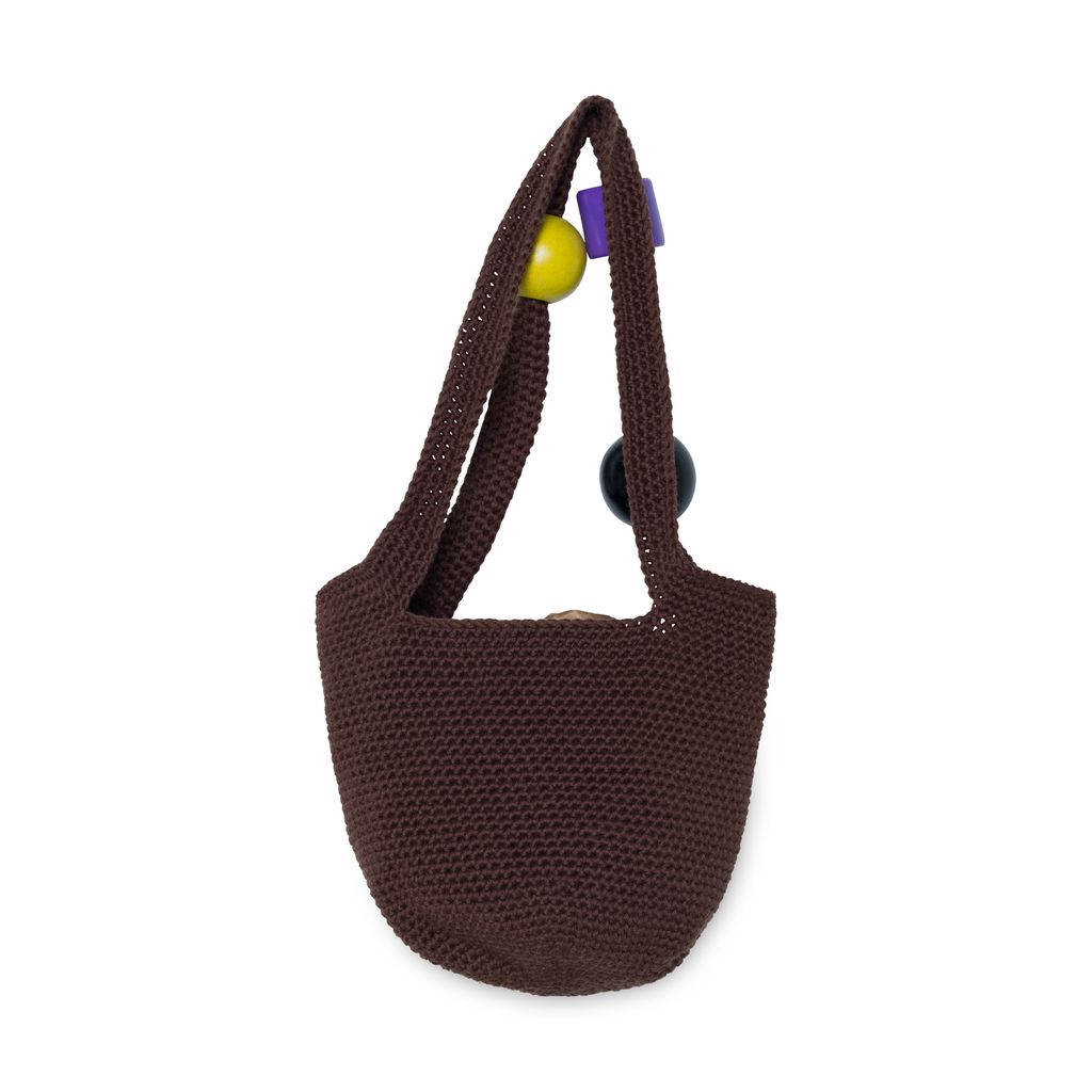 Sardine Basket 2 features hand crocheted cotton/merino from a small family owned farm in Nebraska with jumbo vintage wooden beads.