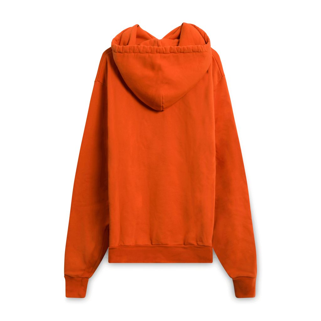 Orange hoodie with draw-string ties and the text "SCI-FI FANTASY" embroidered in red on the chest.