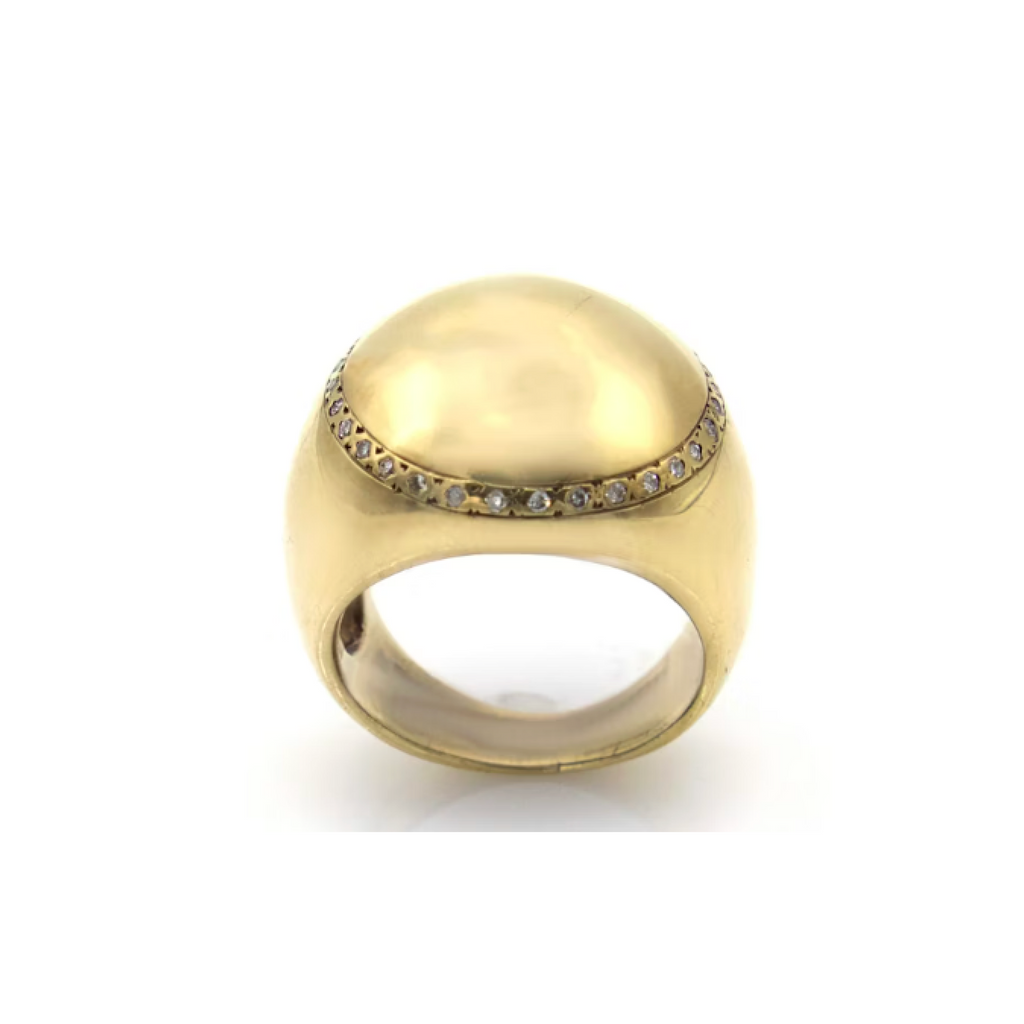 Solid 10K yellow gold , lightweight dome ring with diamond halo. Ring size is 7.