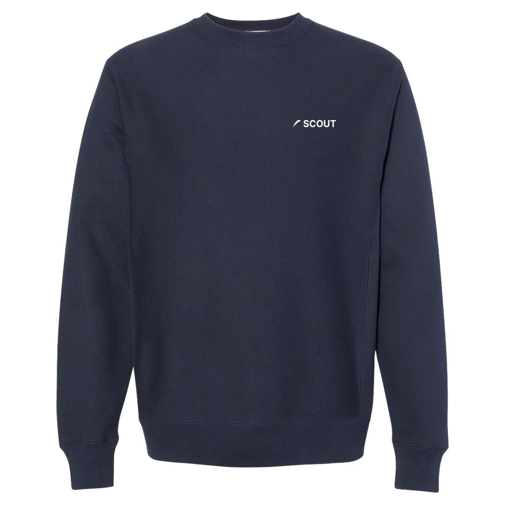 Dark navy crew neck long-sleeve shirt with the "Scout" text and logo on the front.