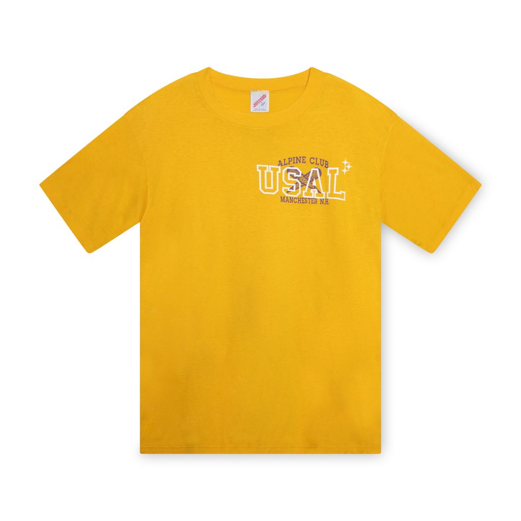 Screenprint Vintage Tee- Alpine Club features Alpine Club logo on left chest with white USAL screenprinting over it.