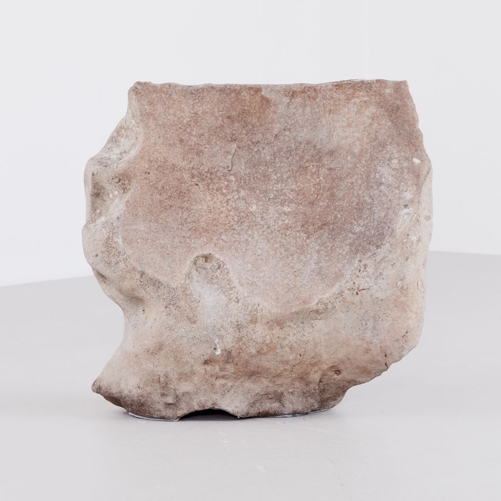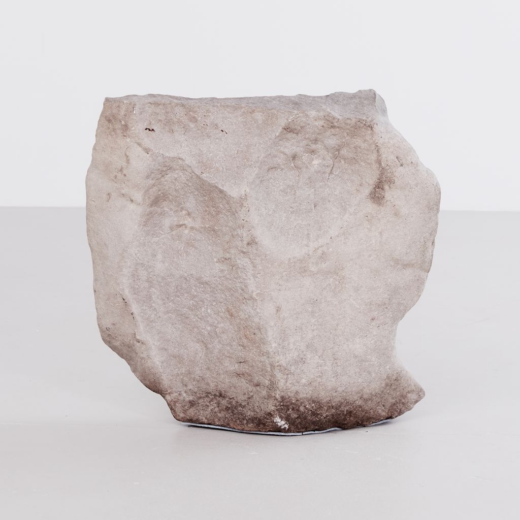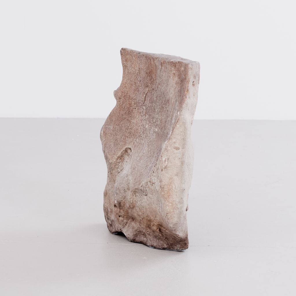 Large garden rock with undulating cantilever form and weathered gradiant.