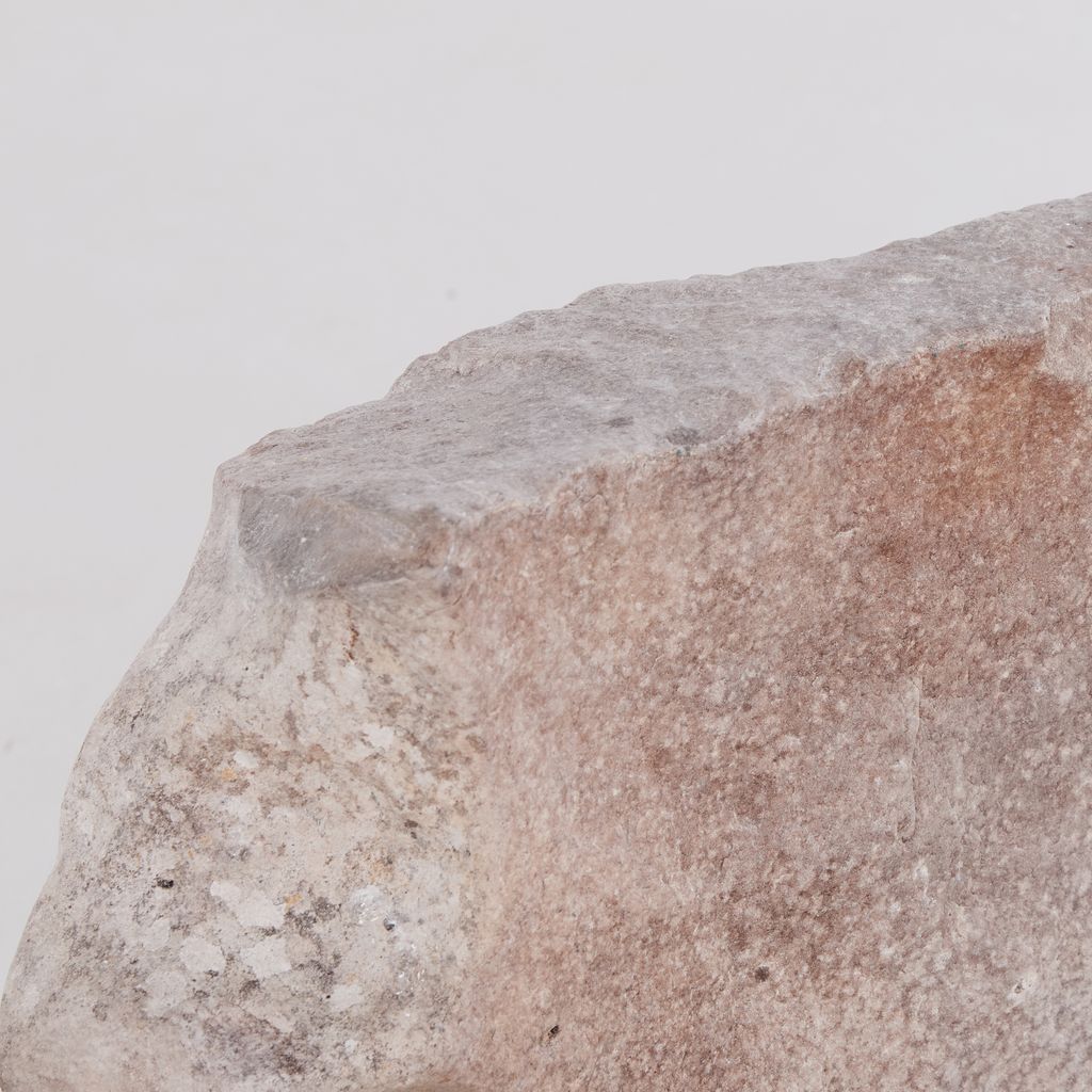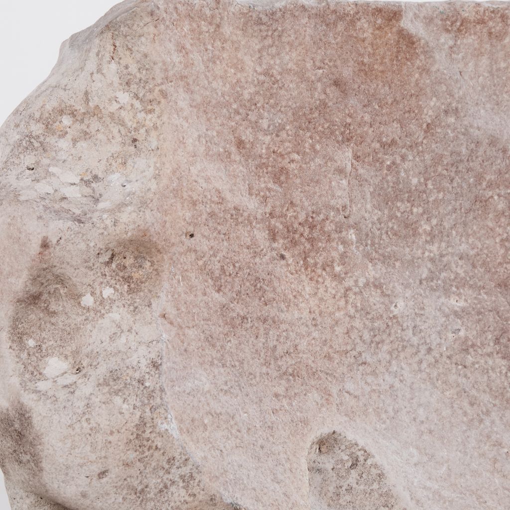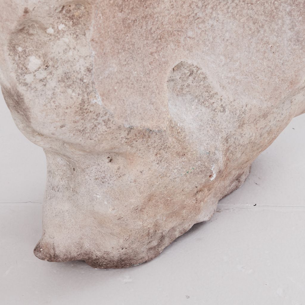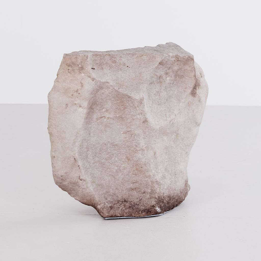 Large garden rock with undulating cantilever form and weathered gradiant.