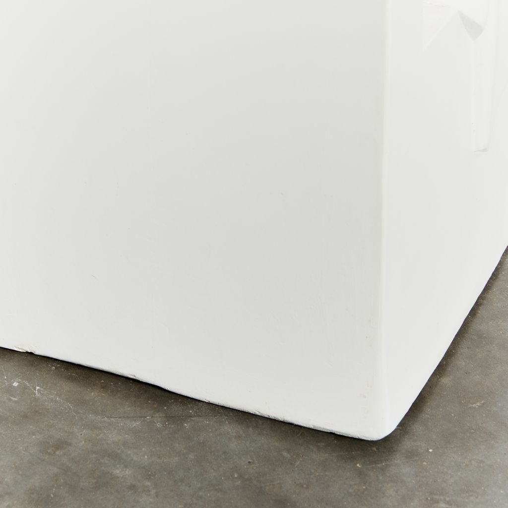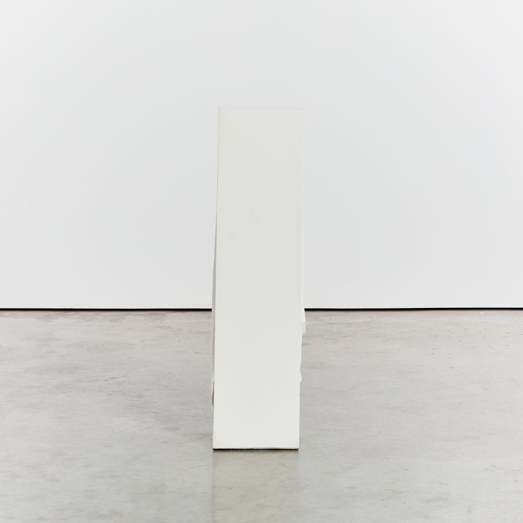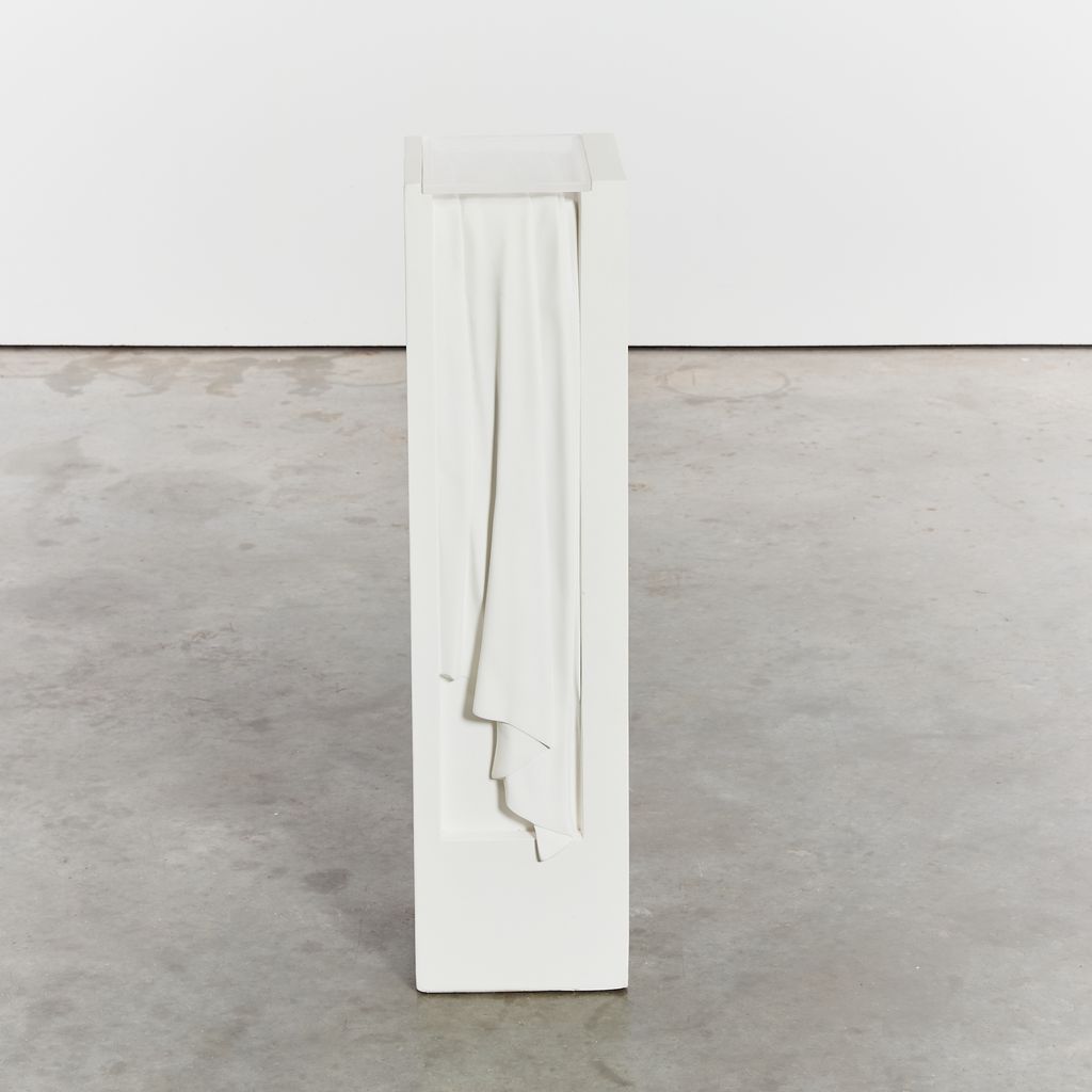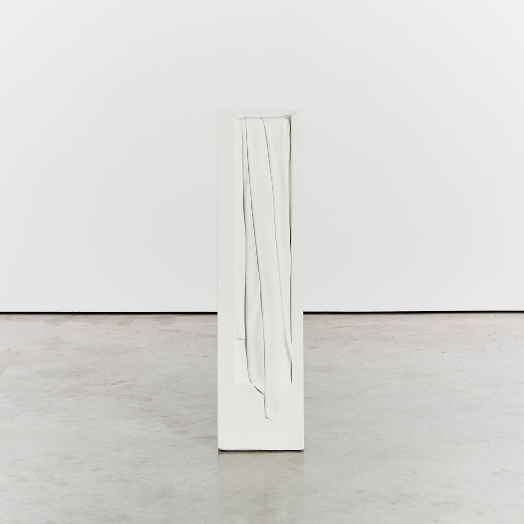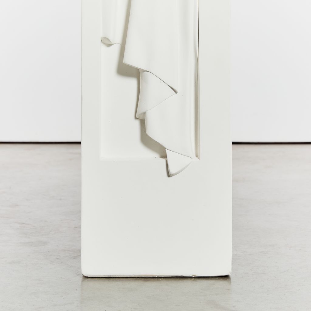 A rare plaster plinth with textile motif, designed in the eighties by Loïc Beuchet for Atelier Sedap. The collection included a sconce model, lamp, plinth, floor lamp and a fireplace. The top of the plinth includes a piece of acrylic to enable a level substrate for use as a plinth.