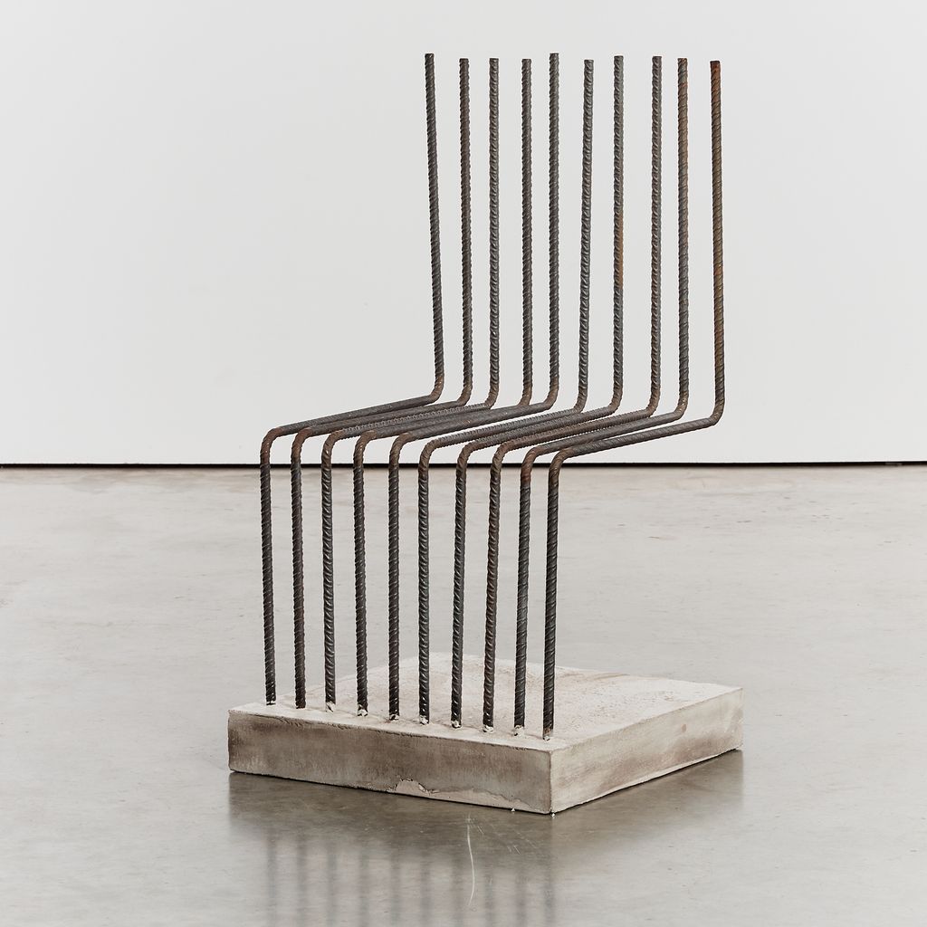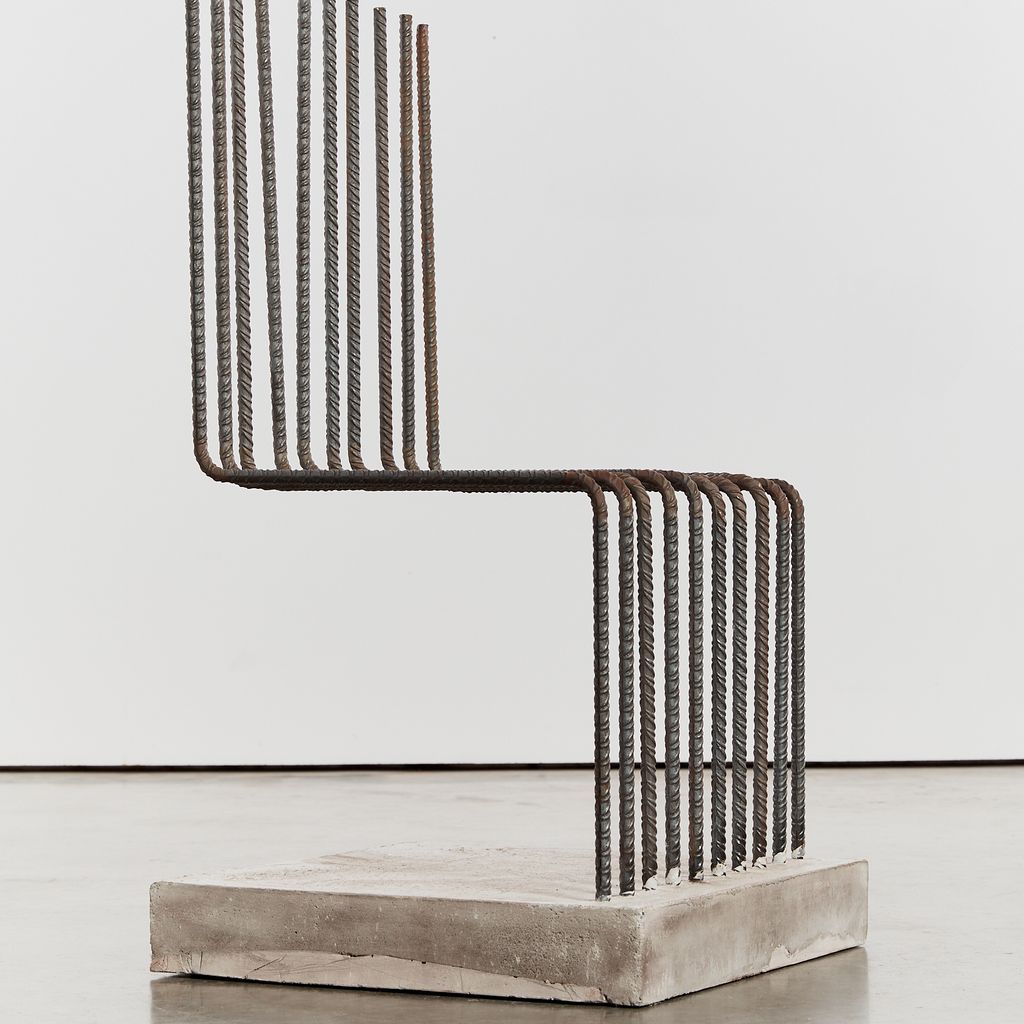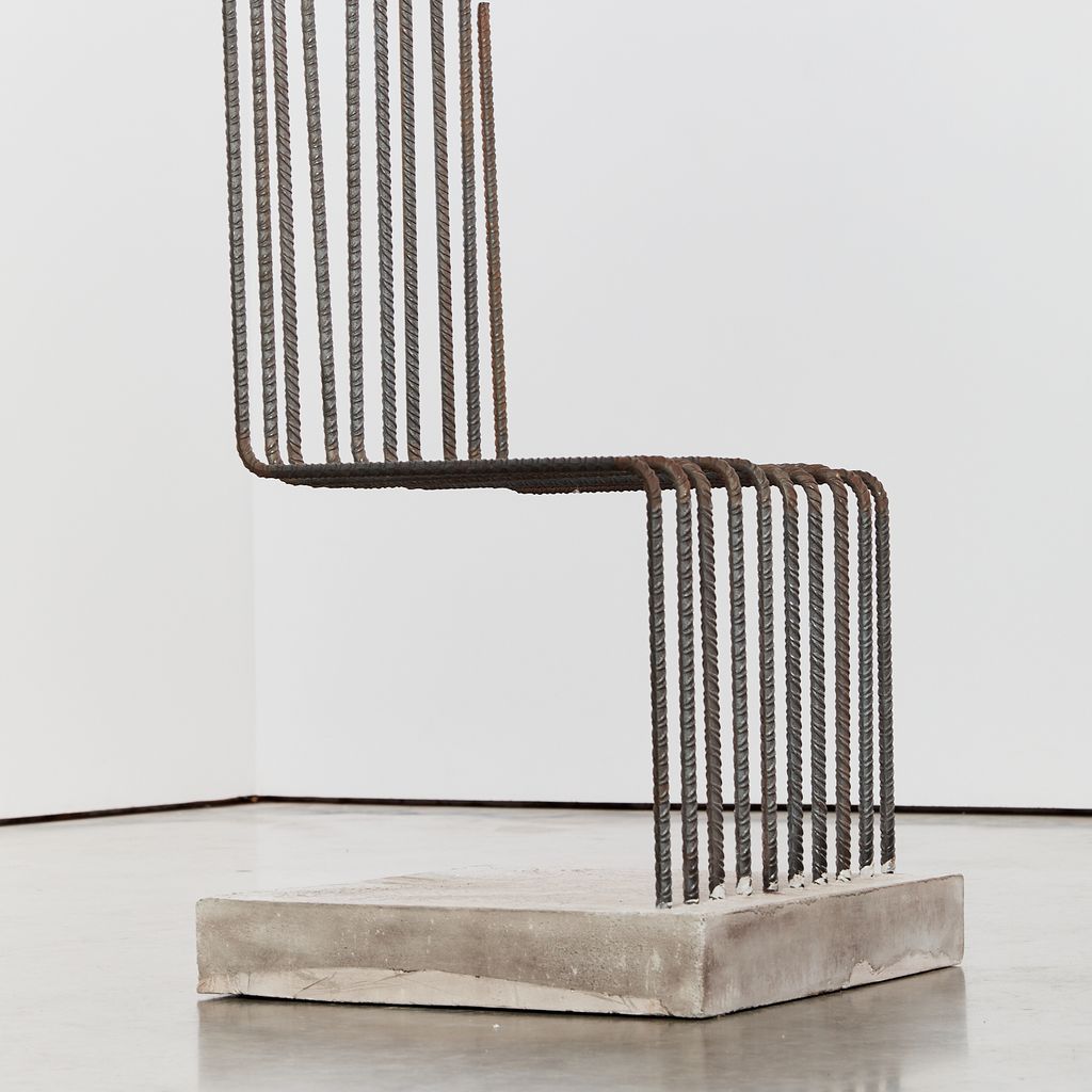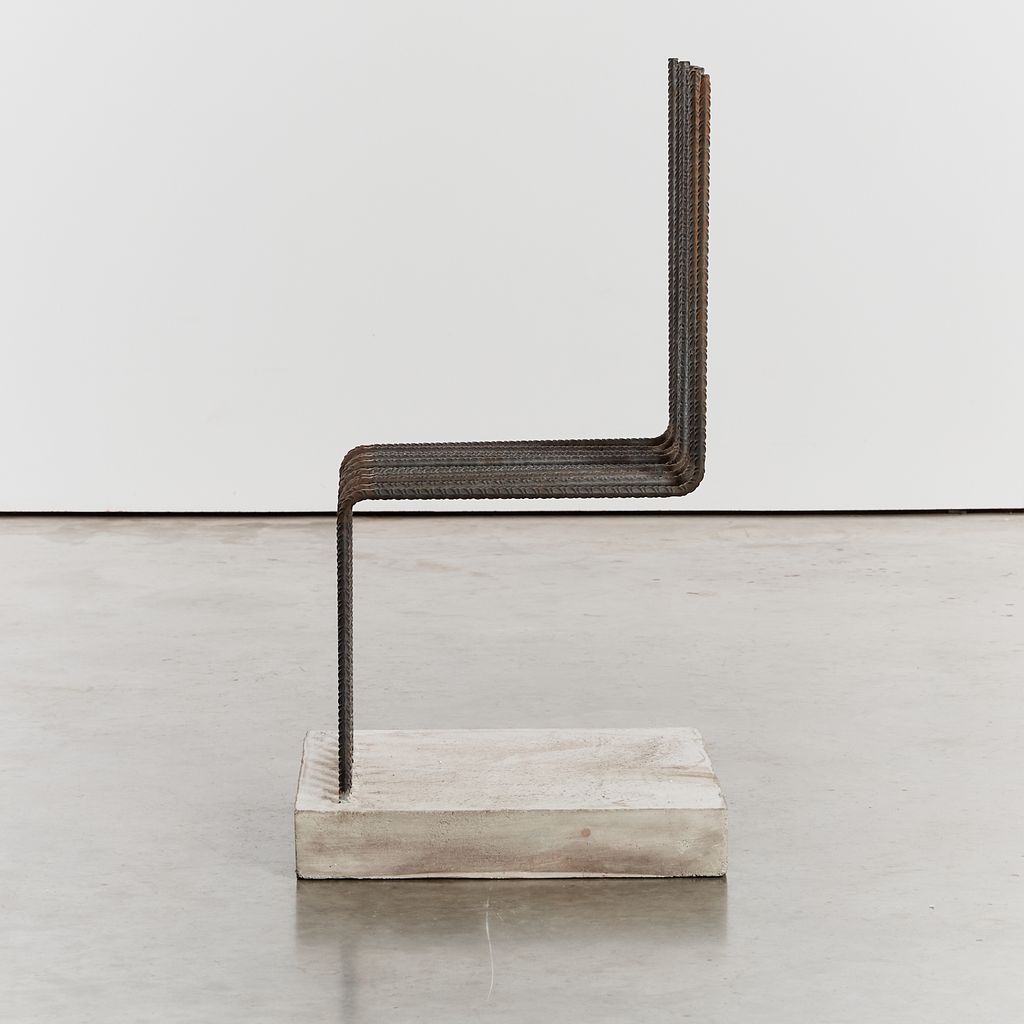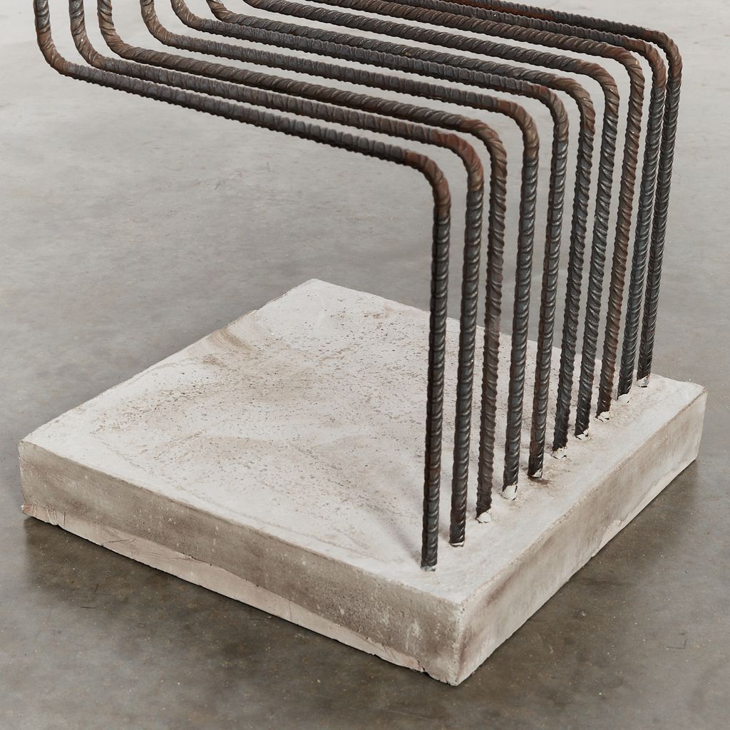 Inspired by Heinz Landes iconic Solid chair, this sculptural piece features a shorter back rest, with the same distinctive bent rebar, embedded in concrete.