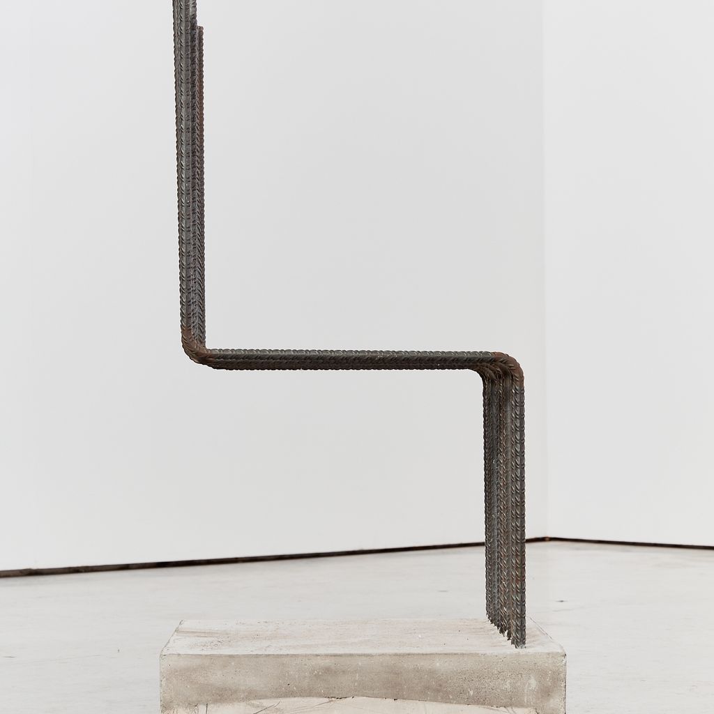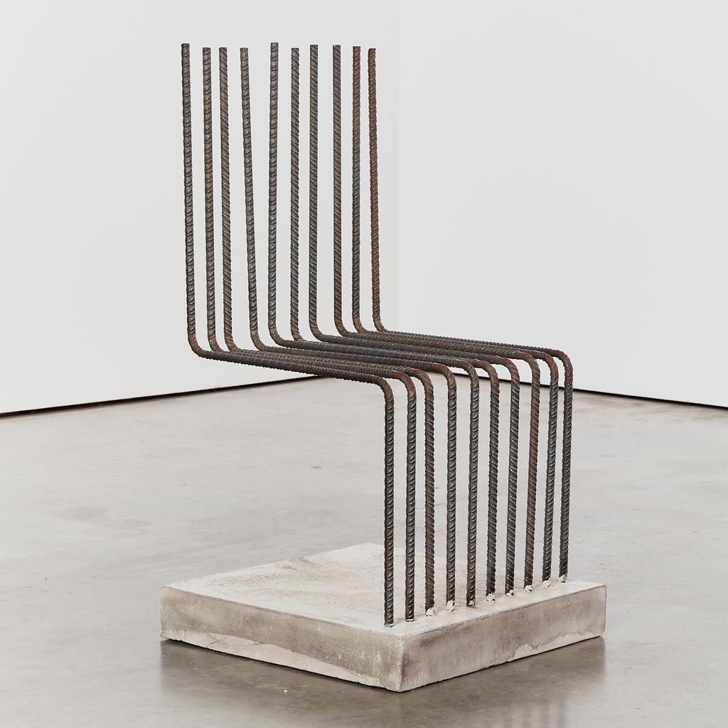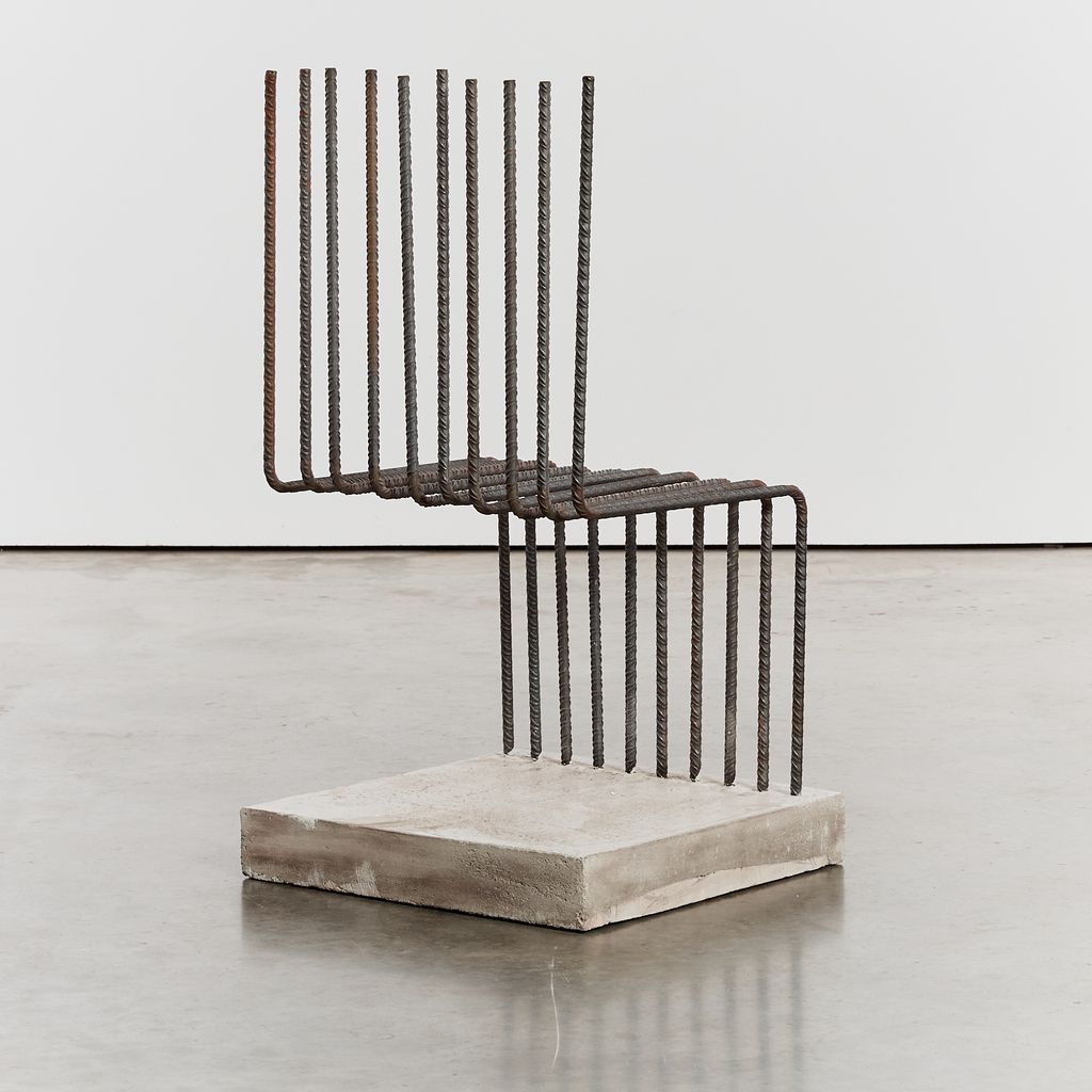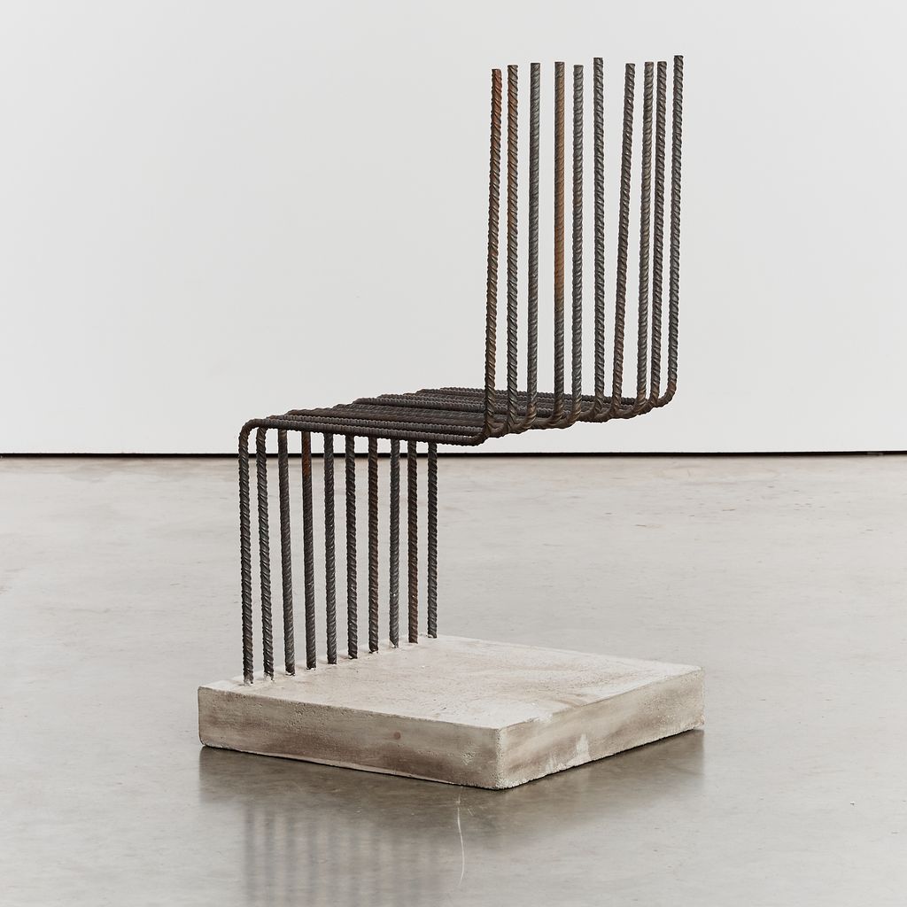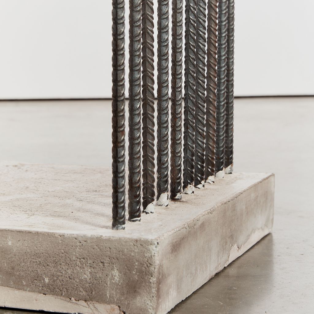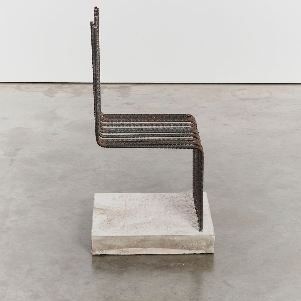 Inspired by Heinz Landes iconic Solid chair, this sculptural piece features a shorter back rest, with the same distinctive bent rebar, embedded in concrete.