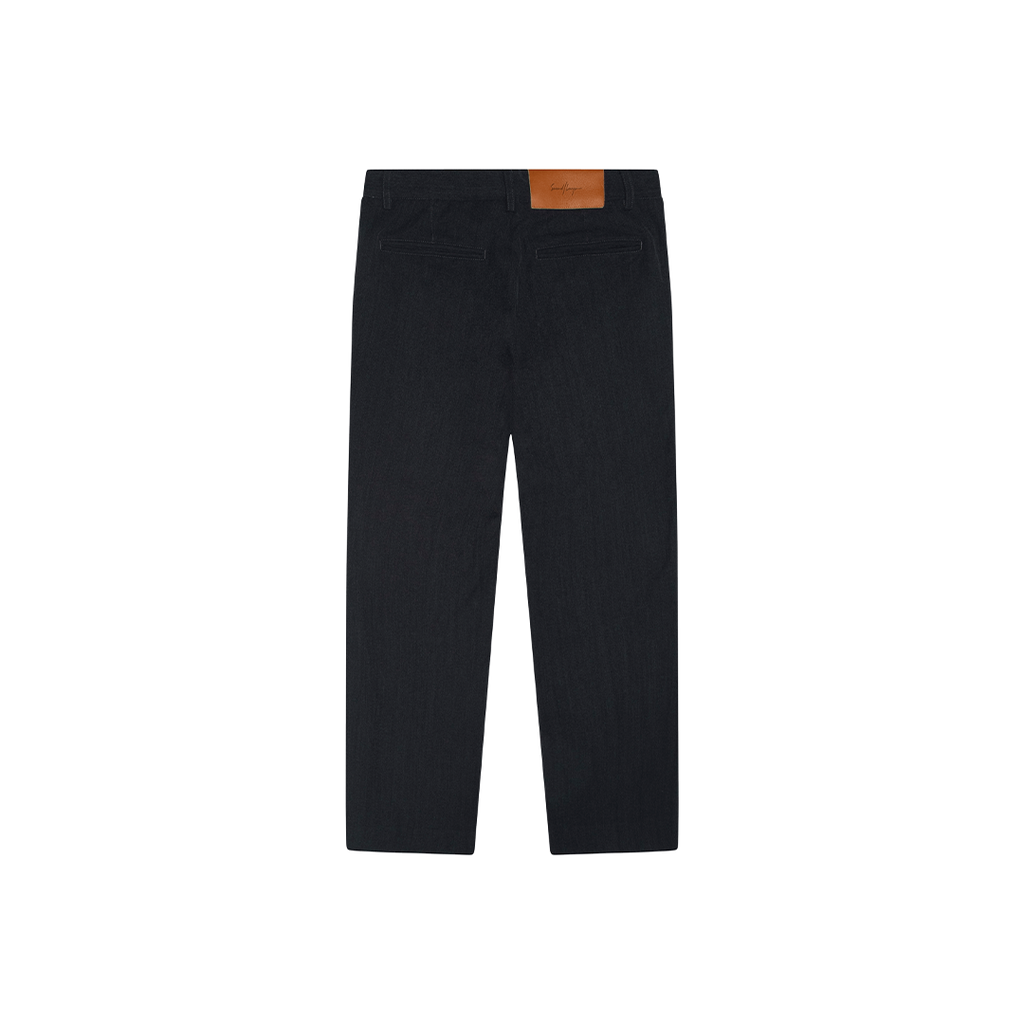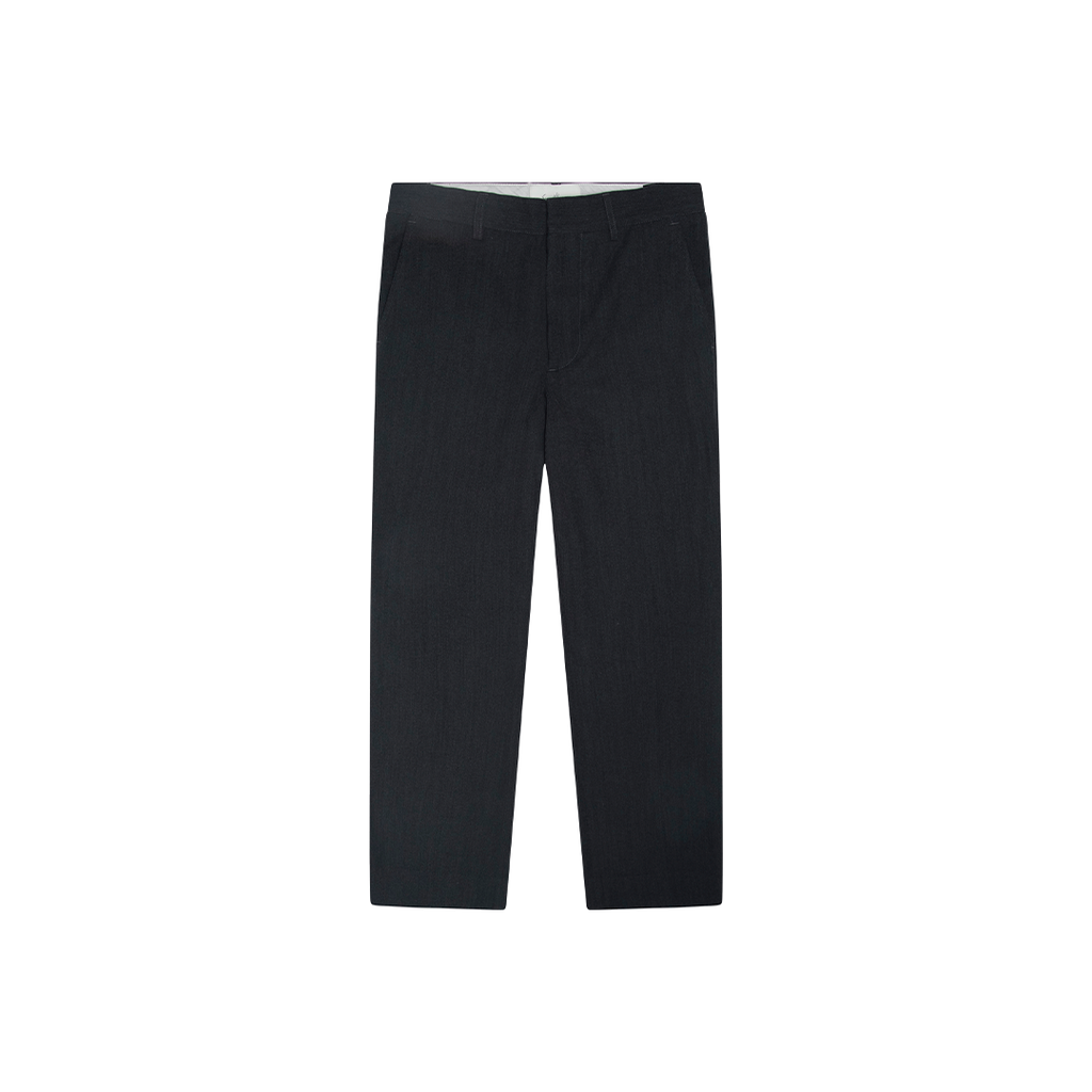 Second Layer Grey Trouser features front clasp closure, belt loops, two front pockets, and two back slit pockets.