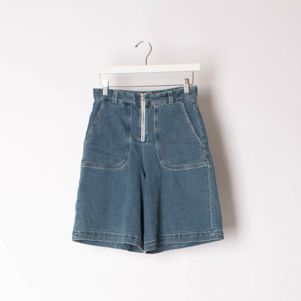 See by Chloe wide leg denim shorts with two front pockets, two back pockets and a silver front zip closure. Size 25.