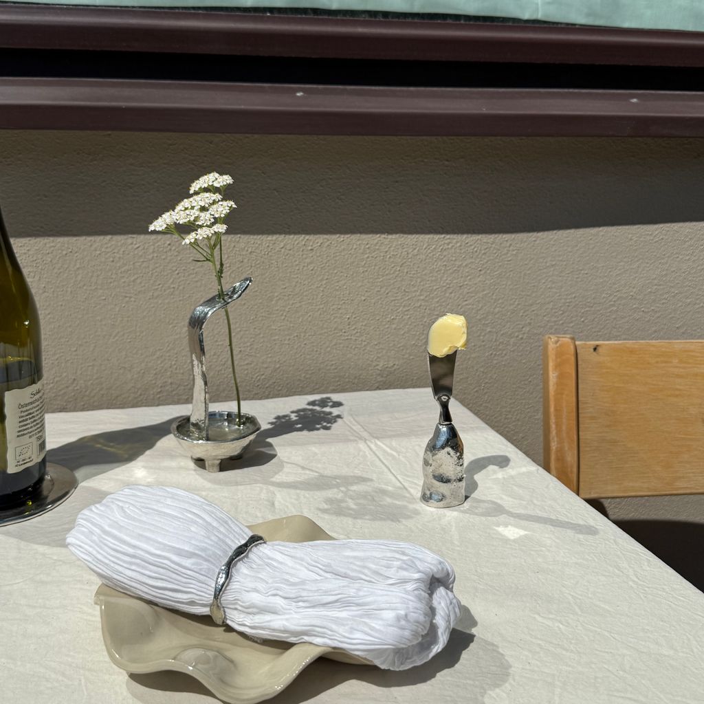 Designed with both function and elegance in mind, Seison butter knife features a flat base that allows it to stand upright—keeping the blade elevated and your table clean from spills. Its bold yet refined form offers a comfortable grip while adding a touch of modern sophistication to your table setting. Perfect for everyday breakfasts or special occasions, this knife brings both practicality and charm to every butter-serving moment.