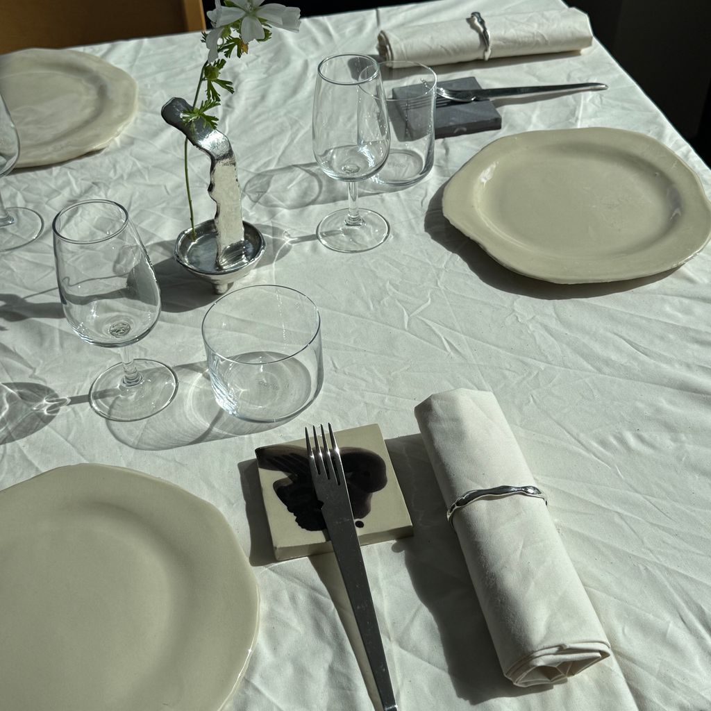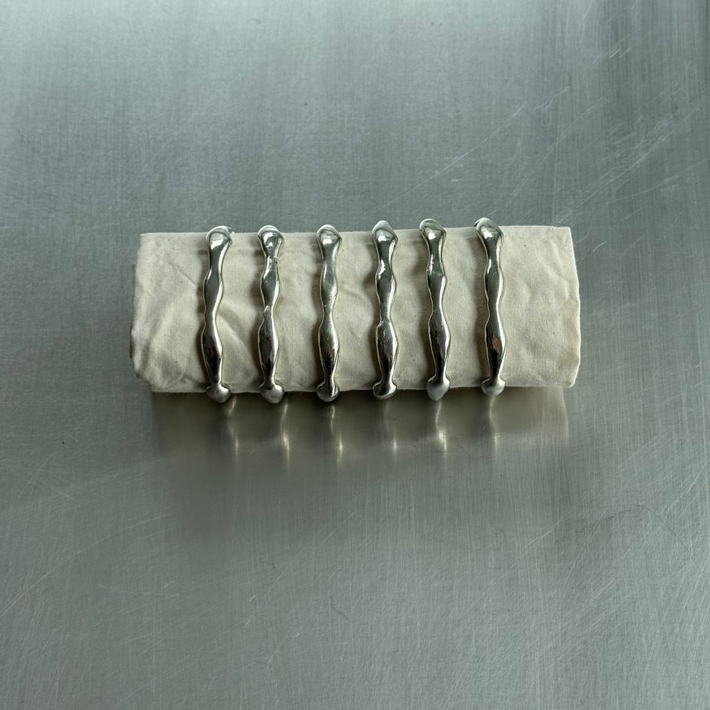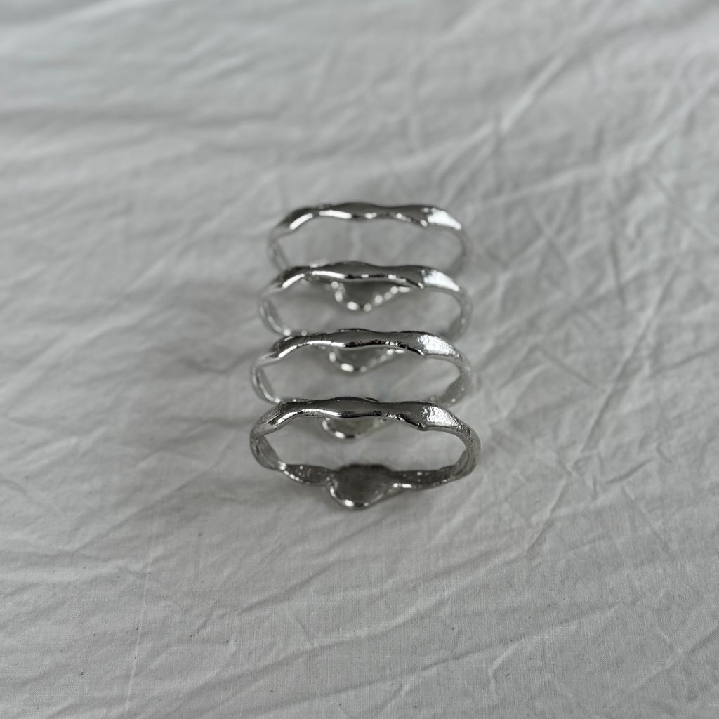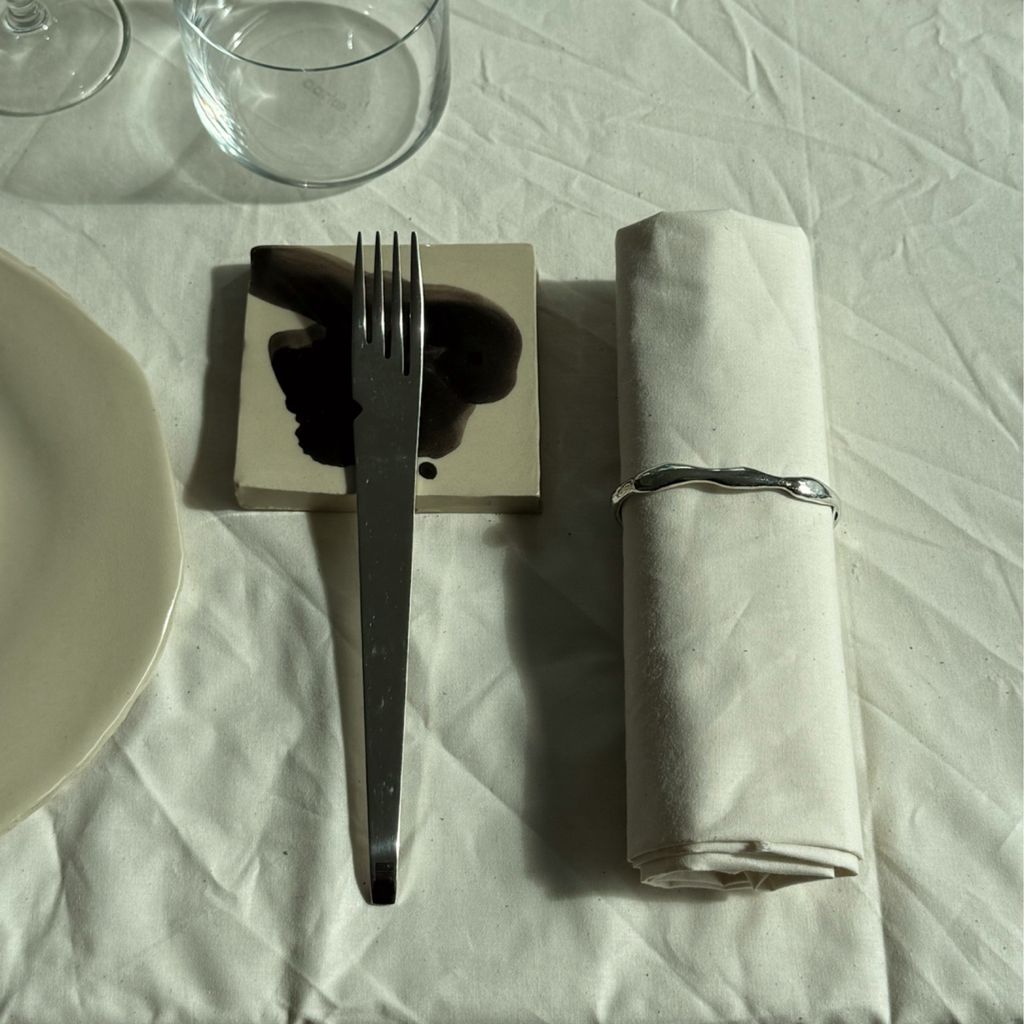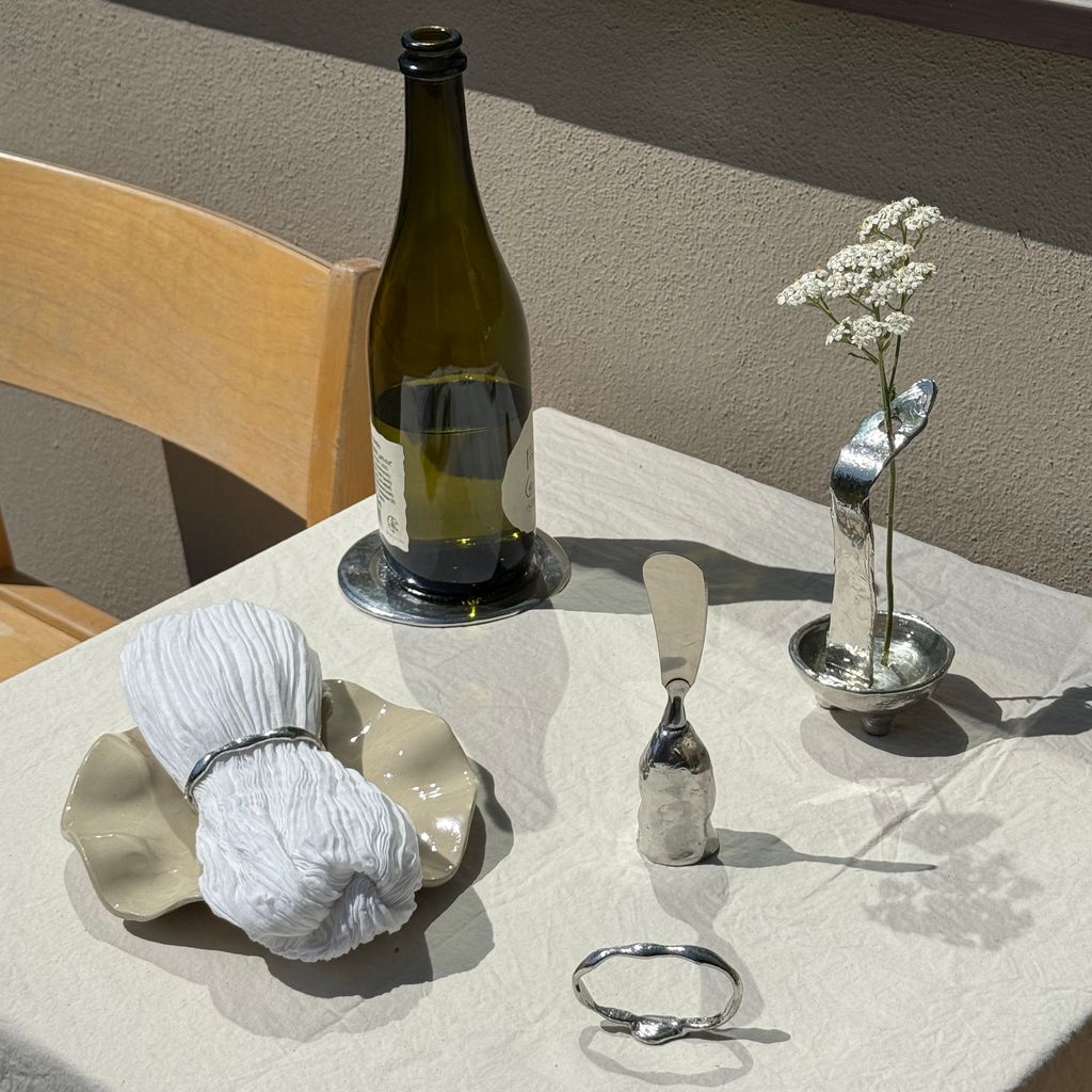 The Seison napkin ring is crafted from solid tin and shaped with gentle, organic curves that bring a sense of calm sophistication to the table. Its flat base allows it to stand upright on its own— transforming from a napkin holder into a subtle, sculptural accent between meals. Perfect for elevating everyday dining or adding a refined touch to special occasions.