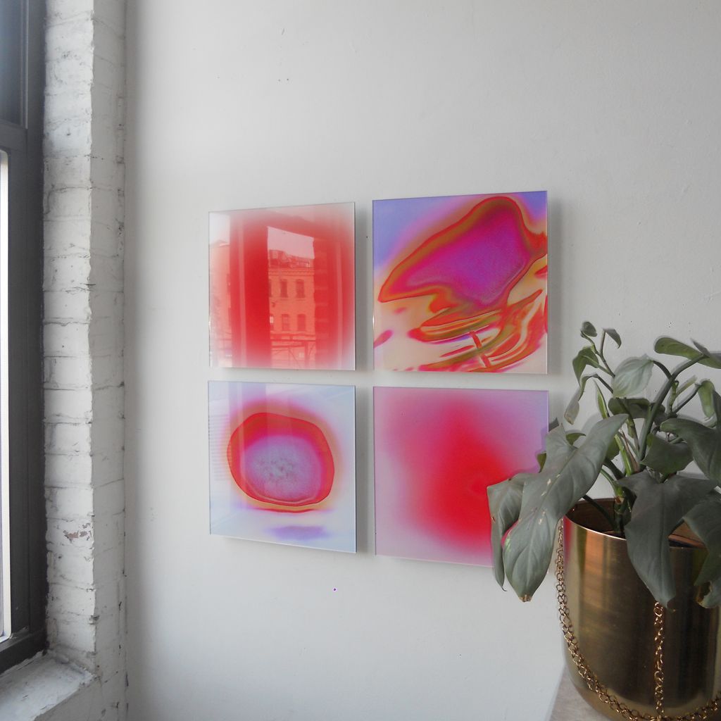 12x12" gallery quality acrylic paint, edition of 10. Aluminum mounting hardware included. Each print is made-to-order and will ship 1-2 weeks of order date. These modular sets can be mixed, matched and rearranged to suit your space.
