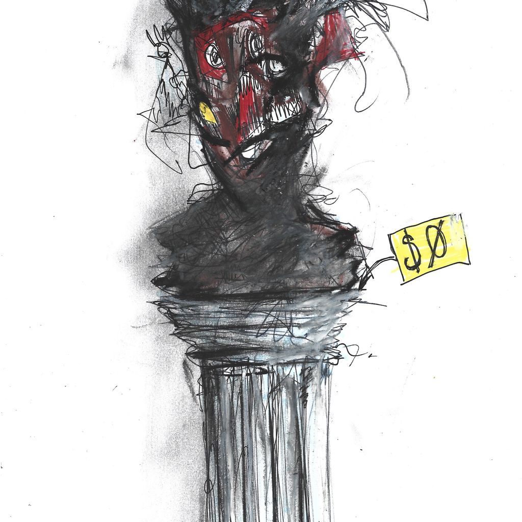 Self Portrait is an ink, charcoal, and acrylic piece on xerox paper.