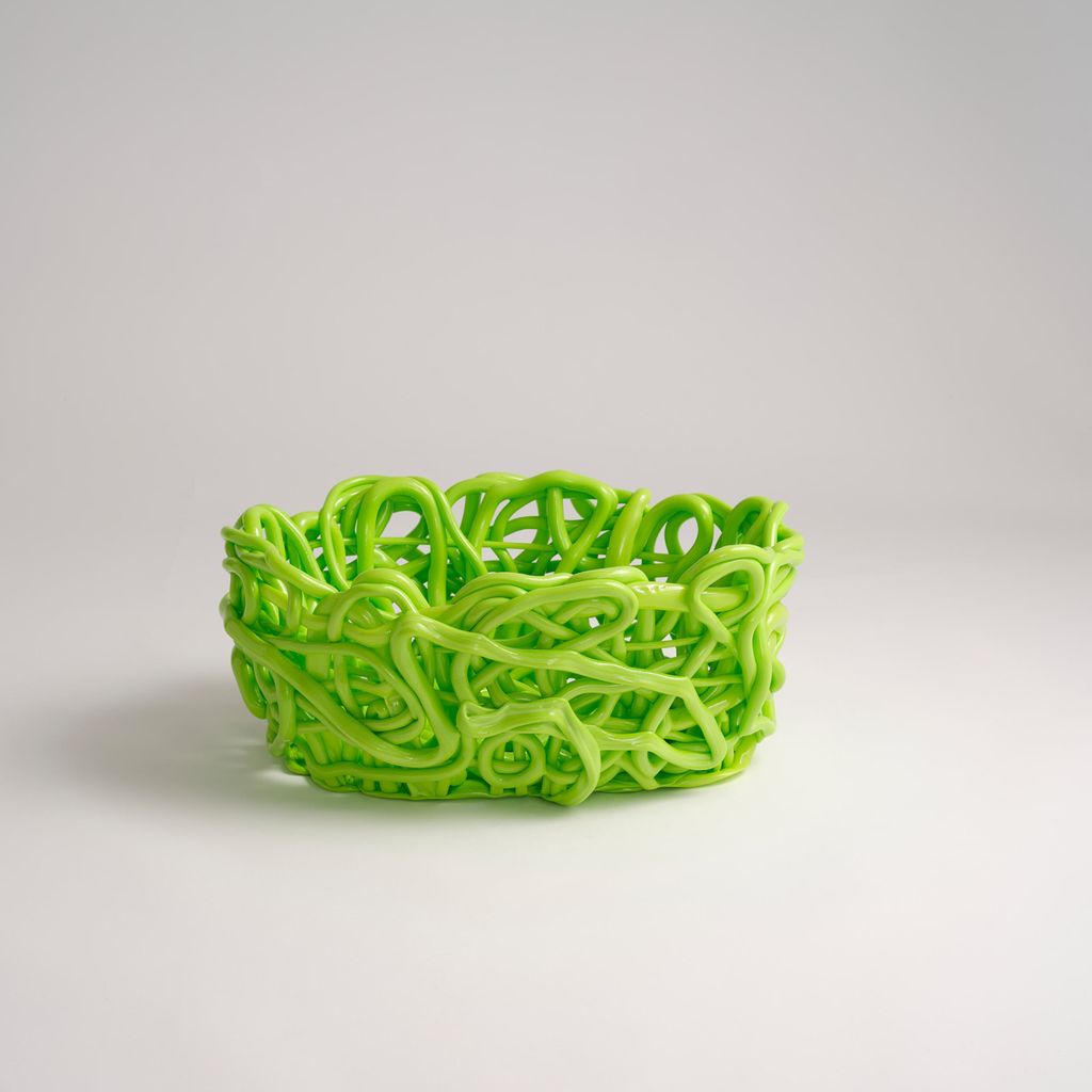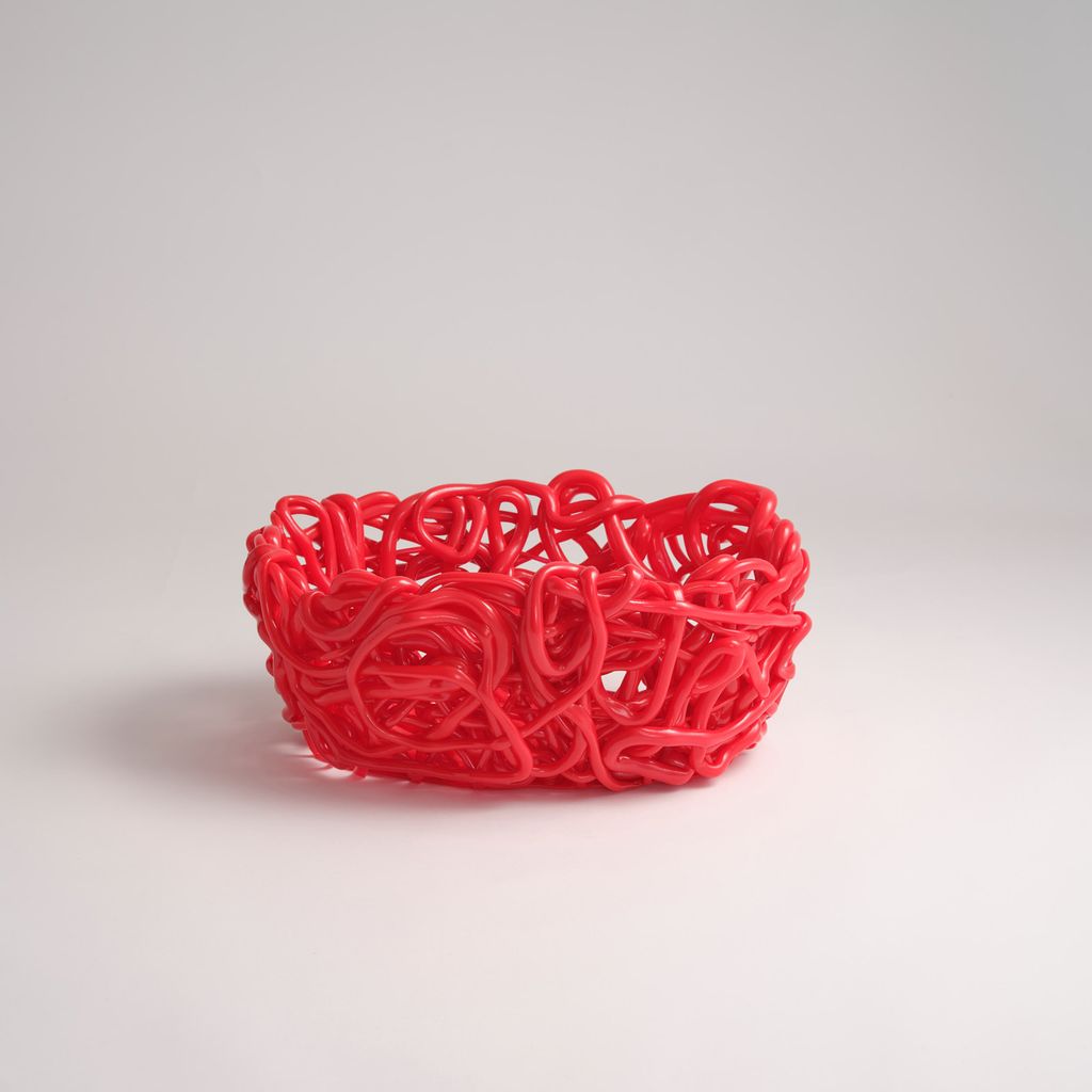 The Senzafine series by Gaetano Pesce is composed by lively vases available in oval, square or round shapes. These very particular objects are formed by the continuous extrusion of a polyurethane cord that the craftsman tangles, creating soft and organic shapes. At the base, then, the Edizioni del Pesce brand is imprinted. The Senzafine vases testify to the uniqueness of each piece of Edizioni del Pesce, thanks to an almost expressionist production, based on the gesture of the craftsman.
