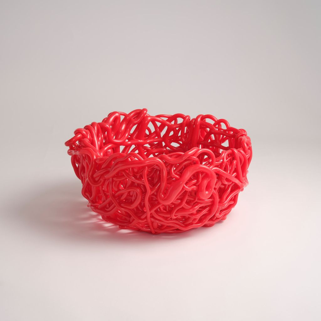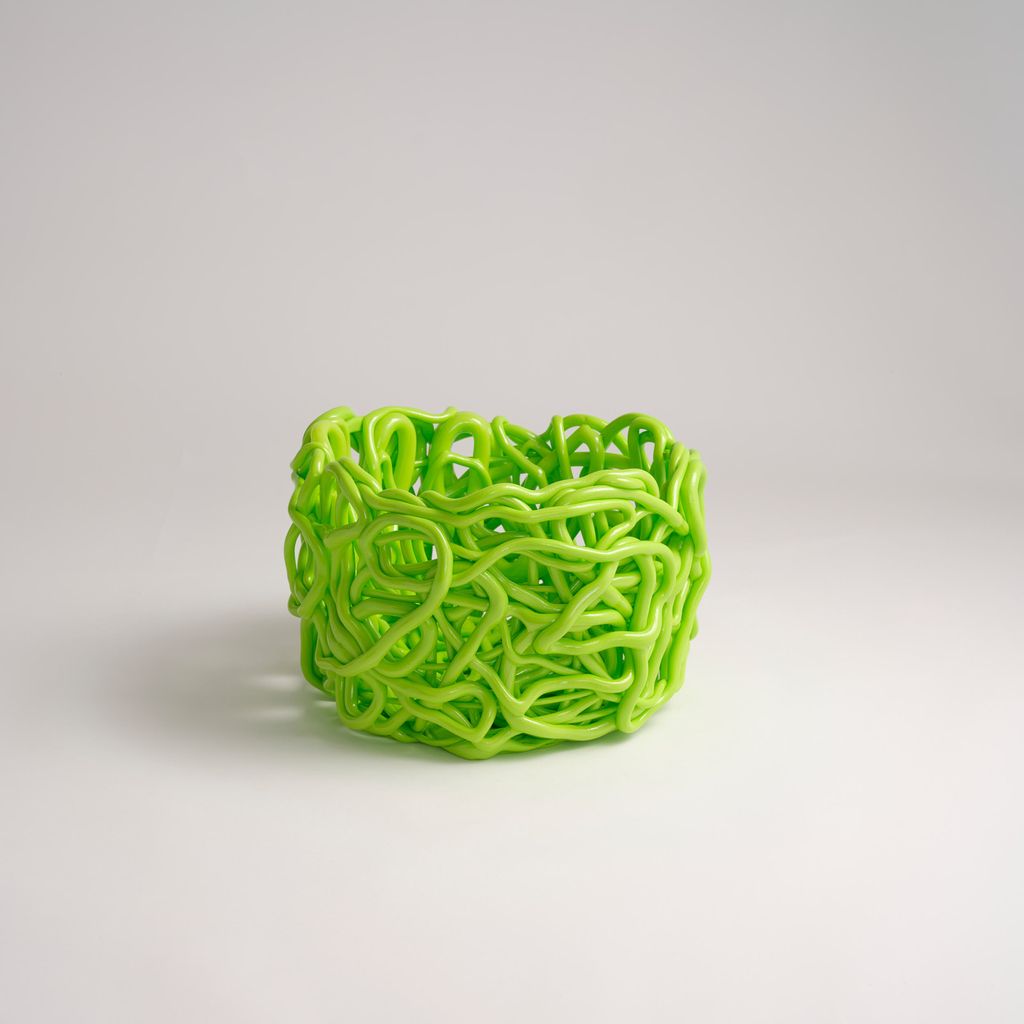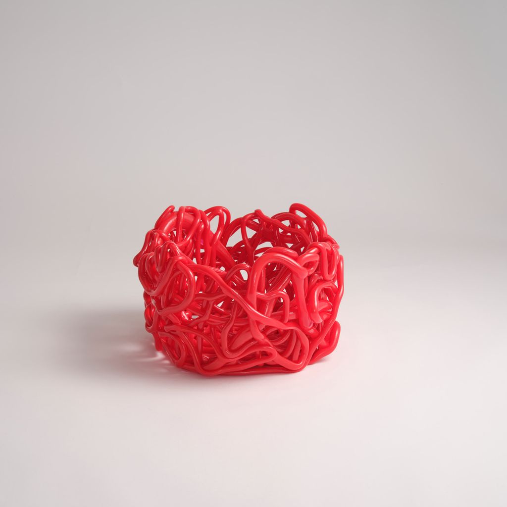 The Senzafine series by Gaetano Pesce is composed by lively vases available in oval, square or round shapes. These very particular objects are formed by the continuous extrusion of a polyurethane cord that the craftsman tangles, creating soft and organic shapes. At the base, then, the Edizioni del Pesce brand is imprinted. The Senzafine vases testify to the uniqueness of each piece of Edizioni del Pesce, thanks to an almost expressionist production, based on the gesture of the craftsman.