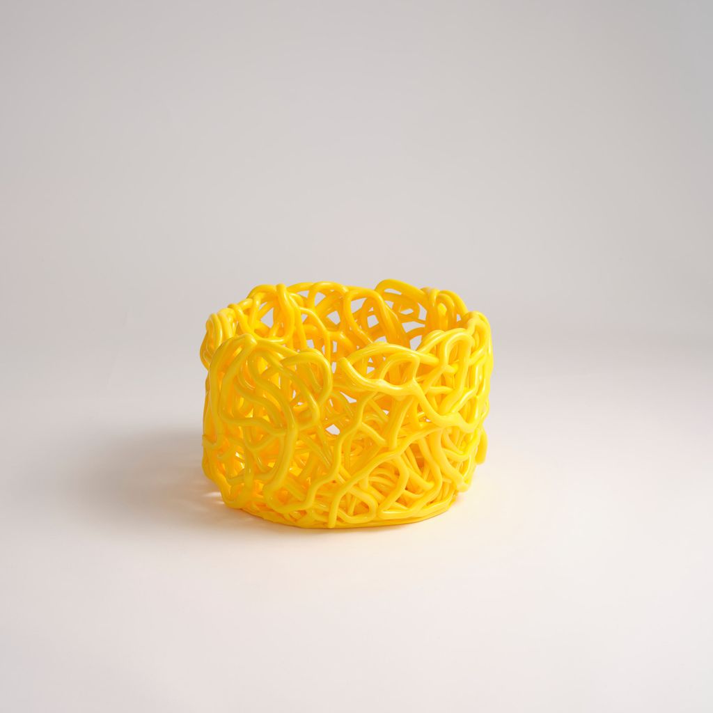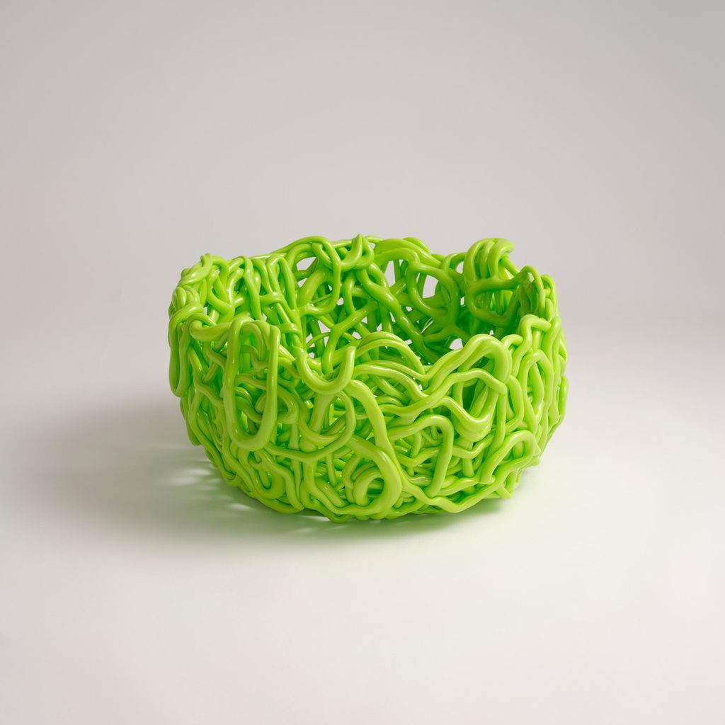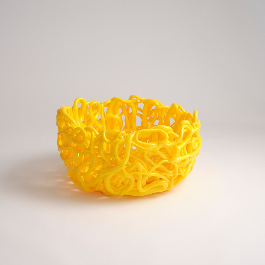 The Senzafine series by Gaetano Pesce is composed by lively vases available in oval, square or round shapes. These very particular objects are formed by the continuous extrusion of a polyurethane cord that the craftsman tangles, creating soft and organic shapes. At the base, then, the Edizioni del Pesce brand is imprinted. The Senzafine vases testify to the uniqueness of each piece of Edizioni del Pesce, thanks to an almost expressionist production, based on the gesture of the craftsman.