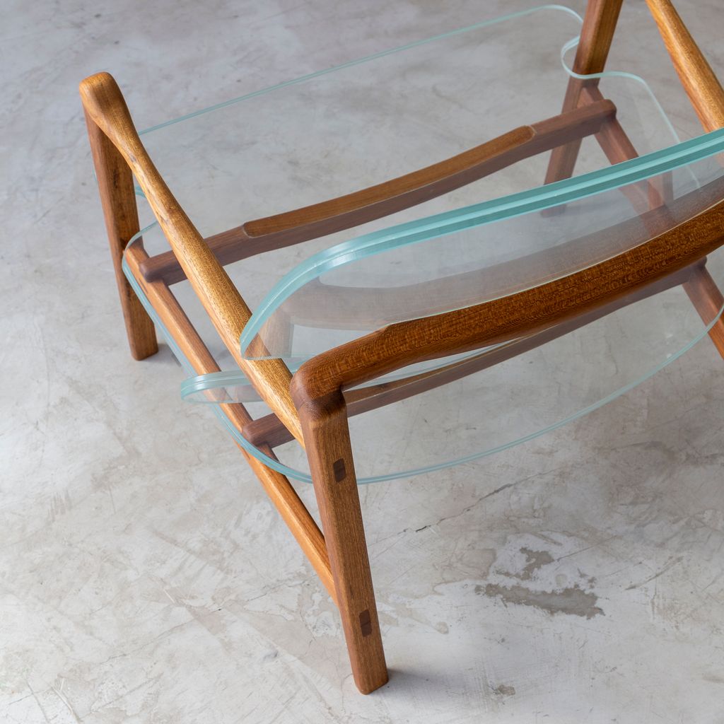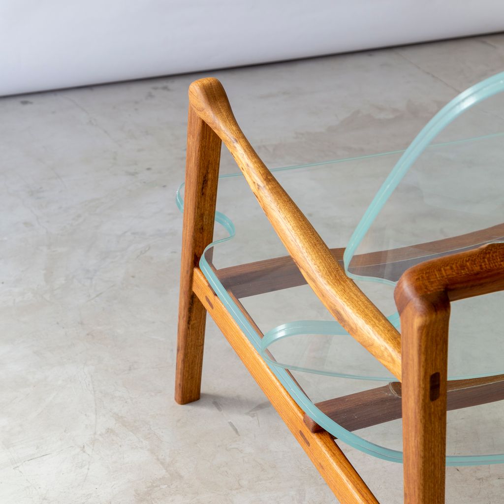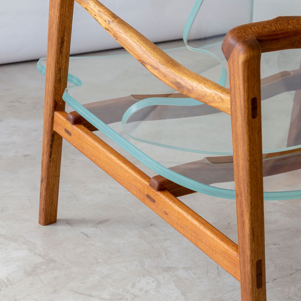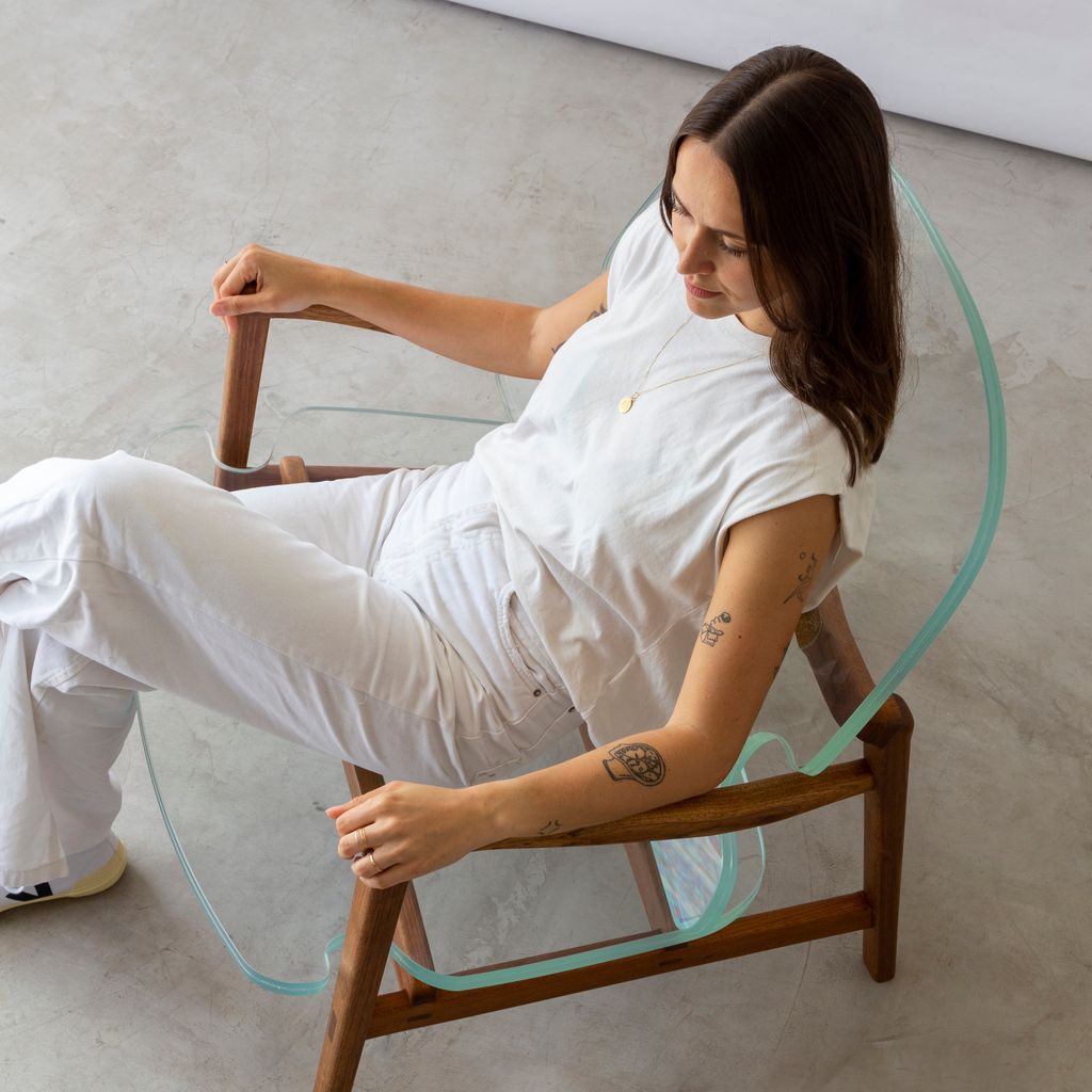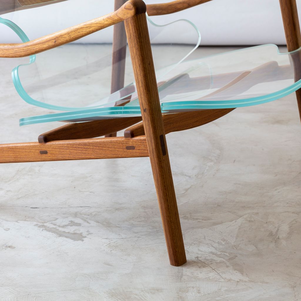 The Serena armchair aims to provoke this reflection by inverting the traditional roles of a chair’s structure and upholstery. The seat and backrest vanish through the transparency of glass, concealing this first subject, which typically plays the leading role in armchairs, and inviting the viewer to look more deeply at the structure supporting the entire piece. Once this new protagonist is discovered, we observe that the structure is entirely handcrafted, revealing the true hidden subject of the work—the human element.