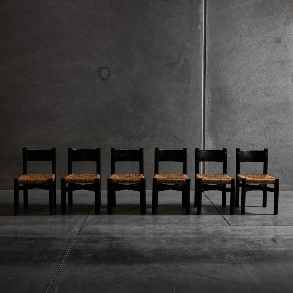 Set of six "Meribel" chairs by Charlotte Perriand. Made in France, circa 1950s.