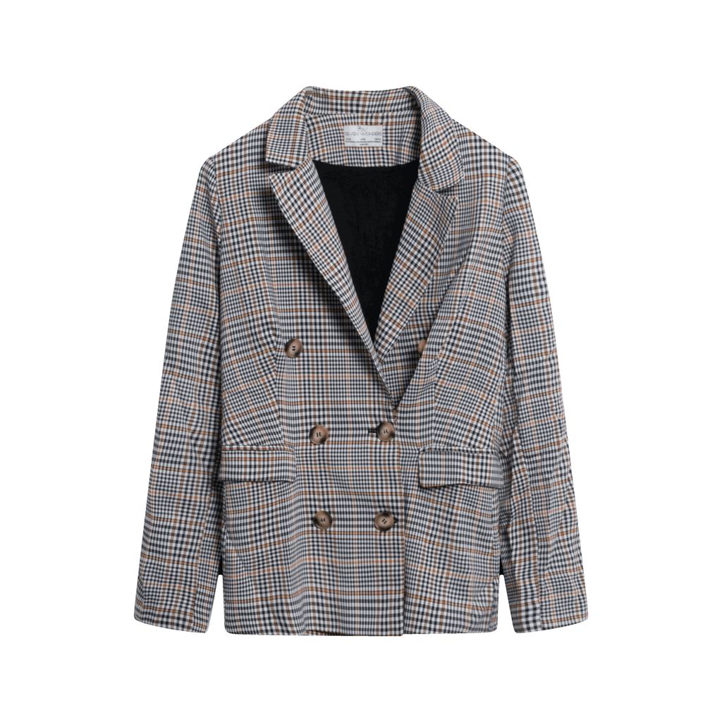 This check blazer by Seven Wonders is chic and easy to elevate any outfit. This blazer features a front double breasted button closure, a lapel collar, and button cuffs. Slightly oversized for loose casual fit. Gently worn in excellent condition.