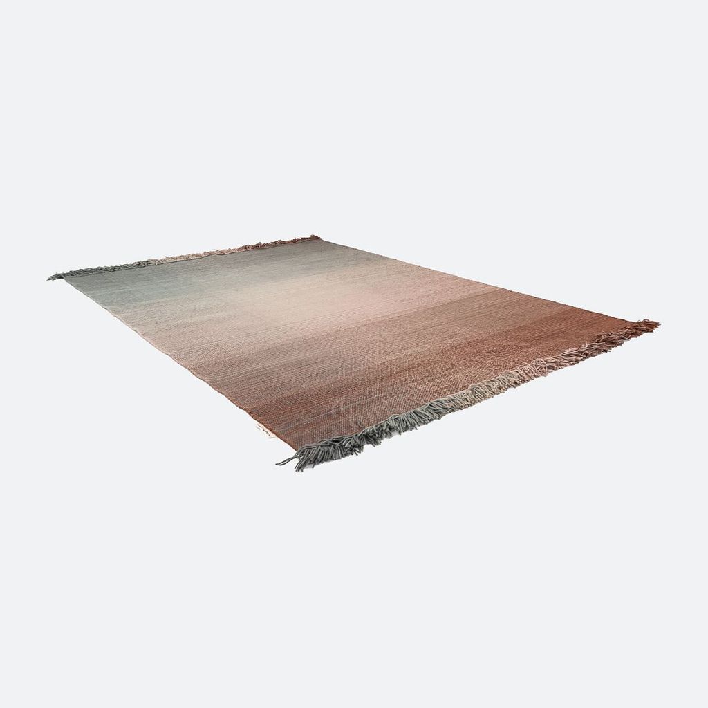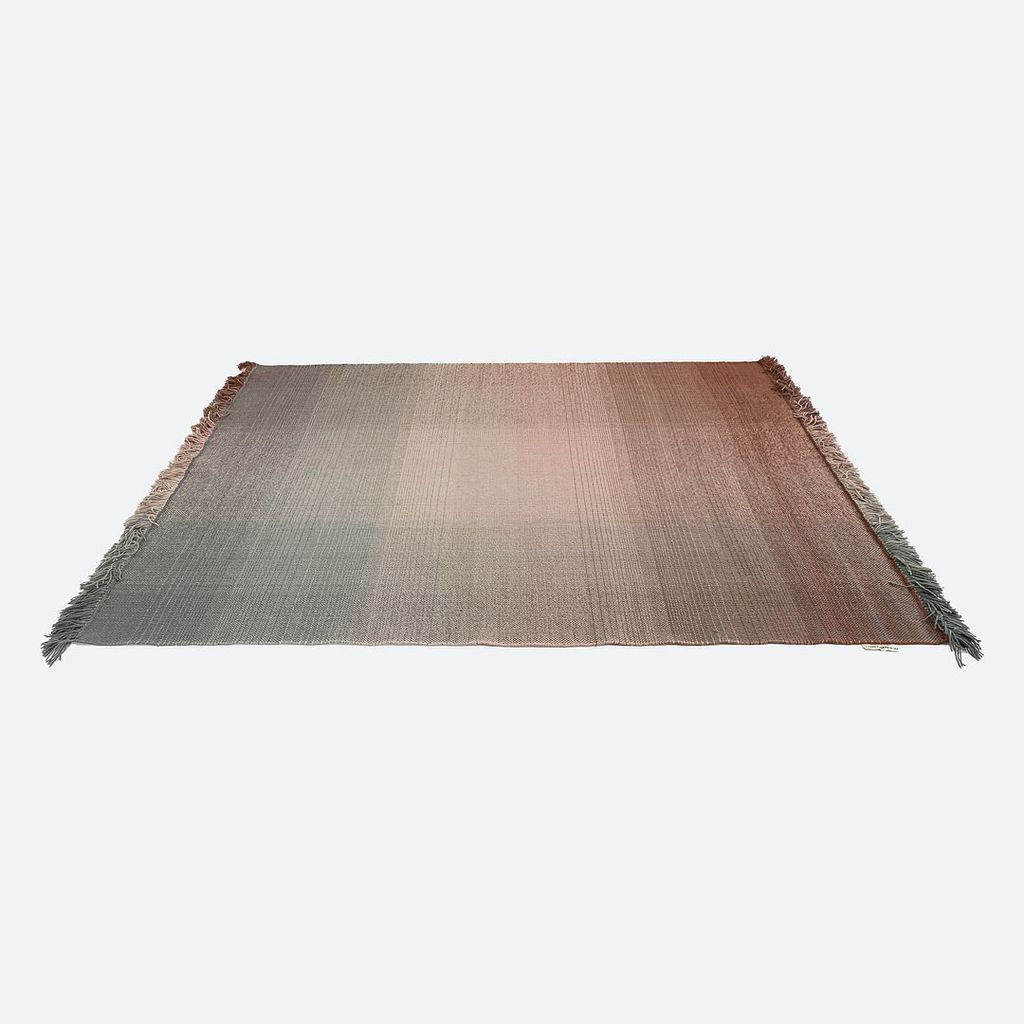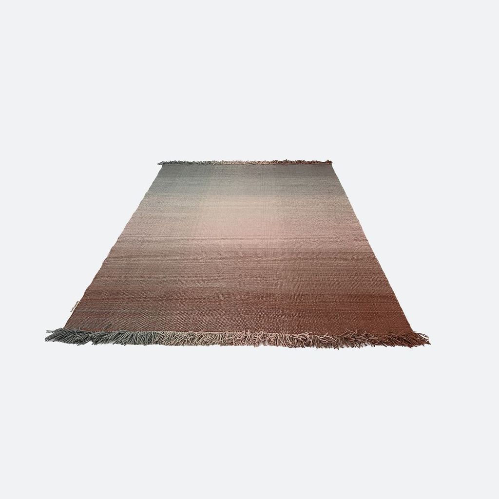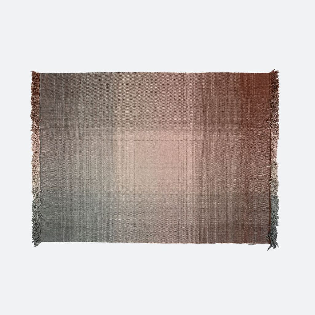 This is a Shade Rug hand loomed with pure New Zealand wool in shades of brown and grey. The rug was designed by Begum Cana Ozgur and produced by Nanimarquina in India. It dates to circa 2022 and is guaranteed as authentic. Condition is very good to excellent. It was a showroom model from Nanimarquina. See photos.