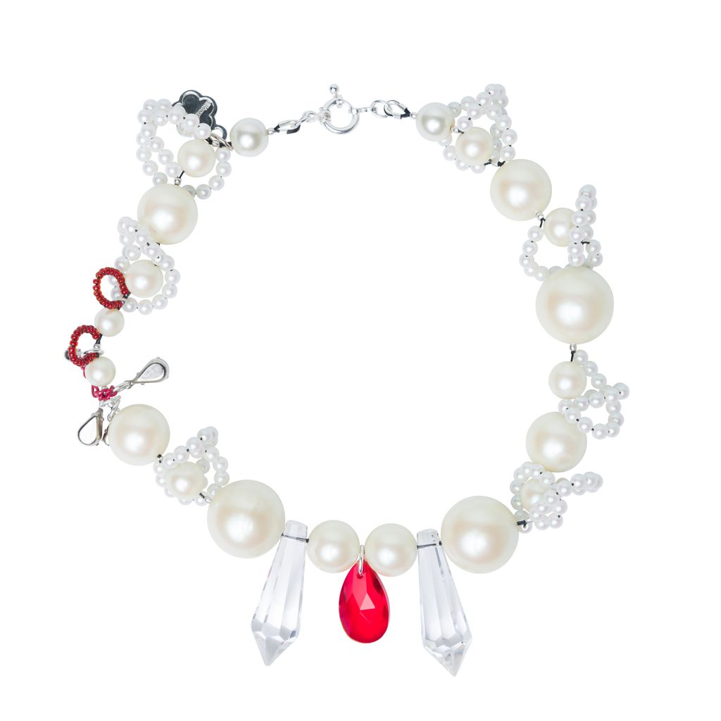 Glass pearls, Austrian glass crystal, Japanese seed beads, sterling silver, stainless steel