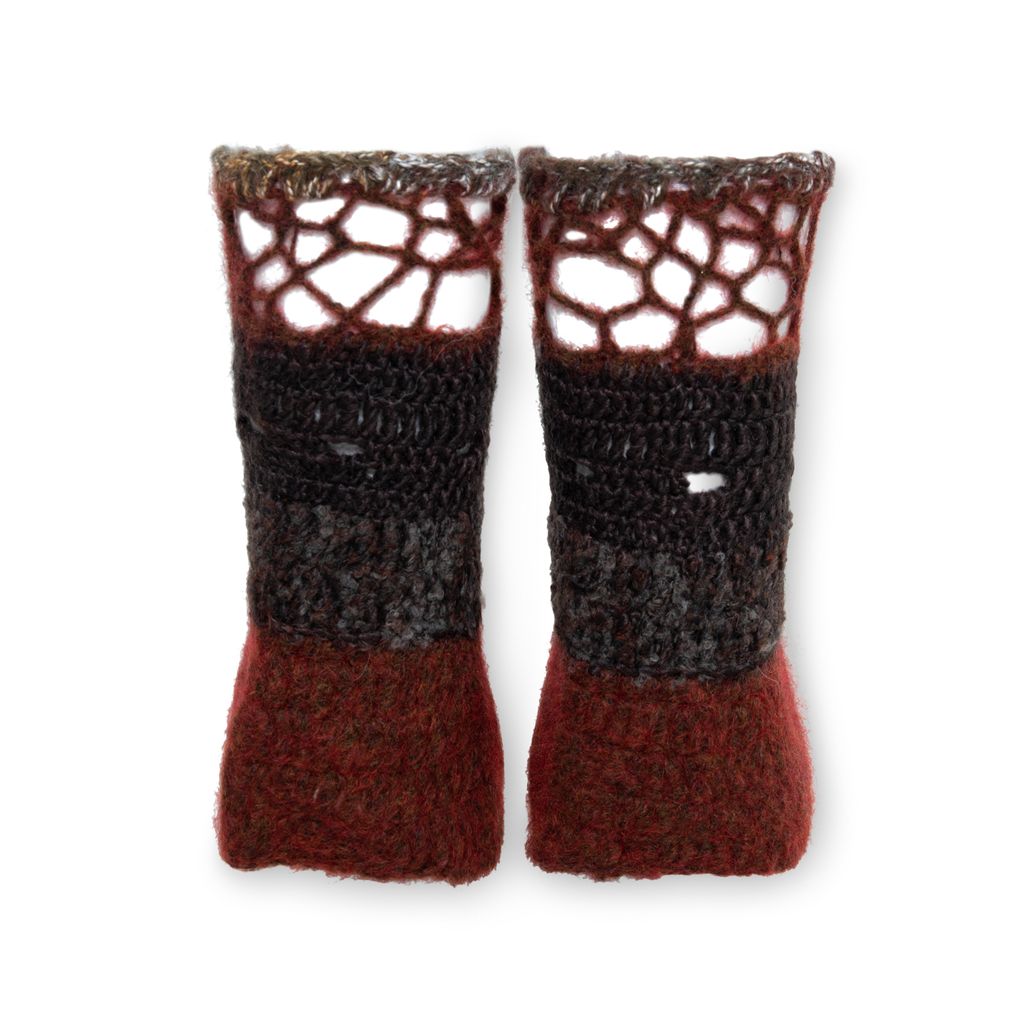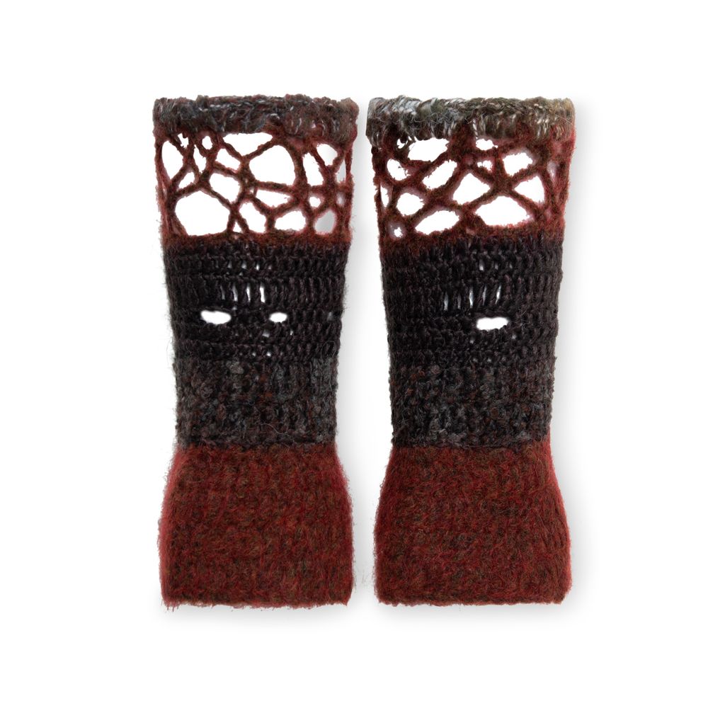 Short Distressed Leg Warmers in Red are carefully crocheted by hand, stitch by stitch. Leg warmers are flared at the bottom, giving a very flattering silhouette. Recommended to wear platforms so it sits nicely. Pair with a crocheted mesh shrug to complete your look.