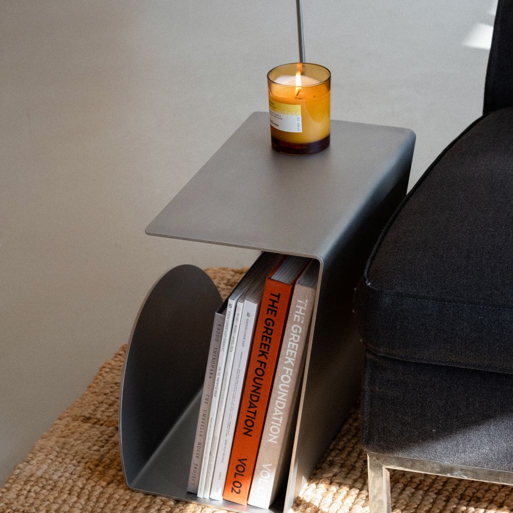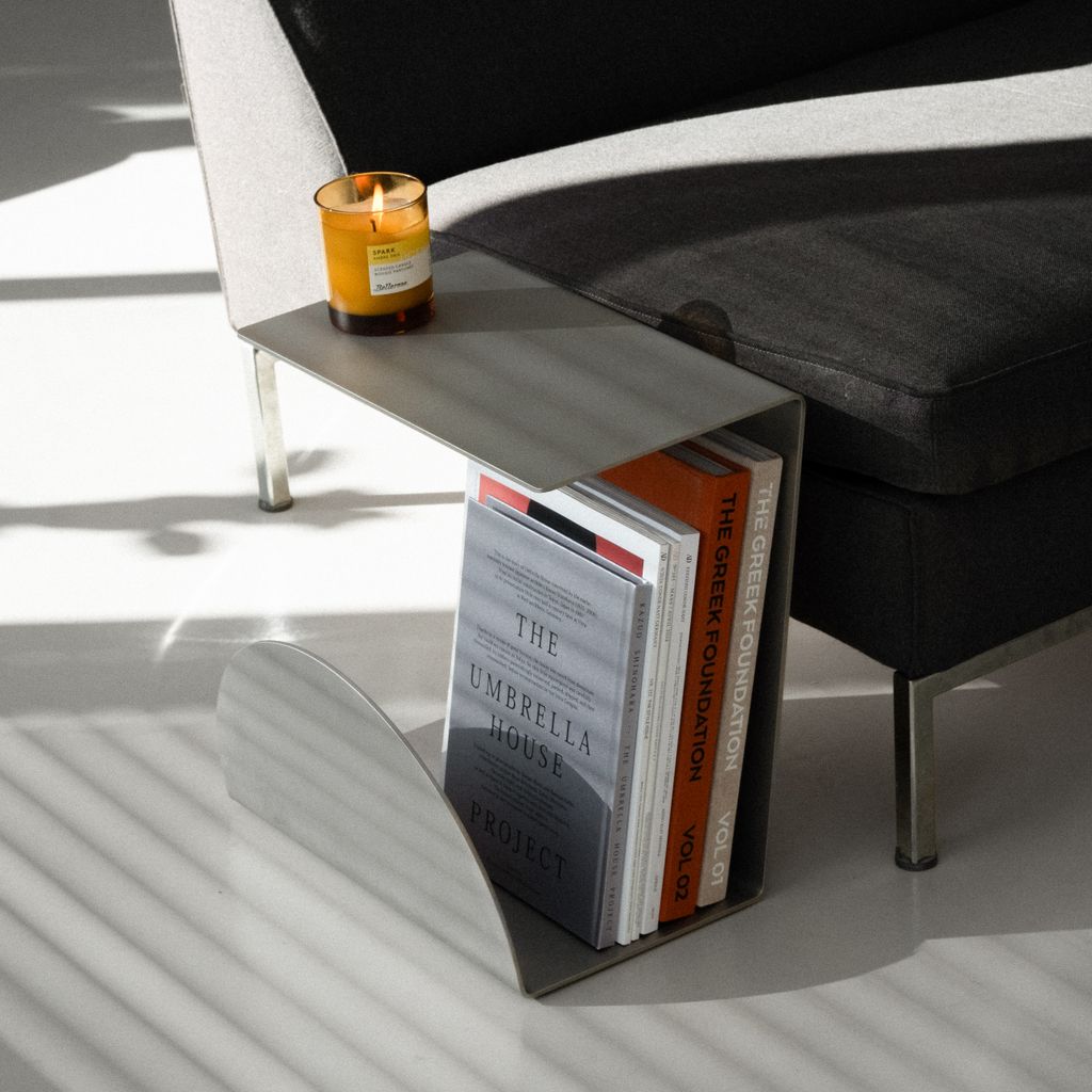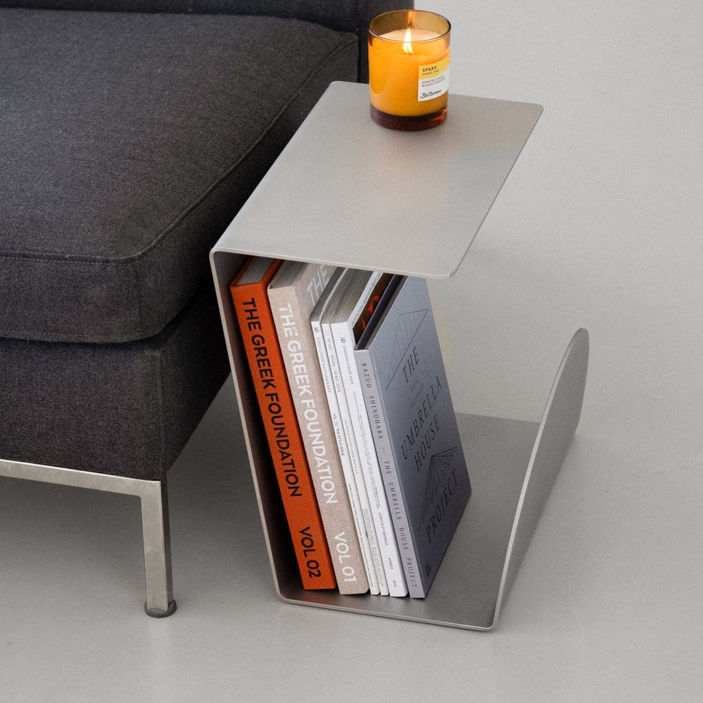 The side table from the X Collection combines modern elegance with functionality. Its elegant design in stainless steel, with a finely crafted top, seems to float above a curved base that offers the perfect space for storing your most beautiful books & magazines. This table merges aesthetics and practicality, making it an ideal choice for those looking for a piece that is both stunning and functional. Perfect to pair with a sofa or bed, it adds a contemporary and sophisticated touch to any interior, while keeping your favorite readings within easy reach.