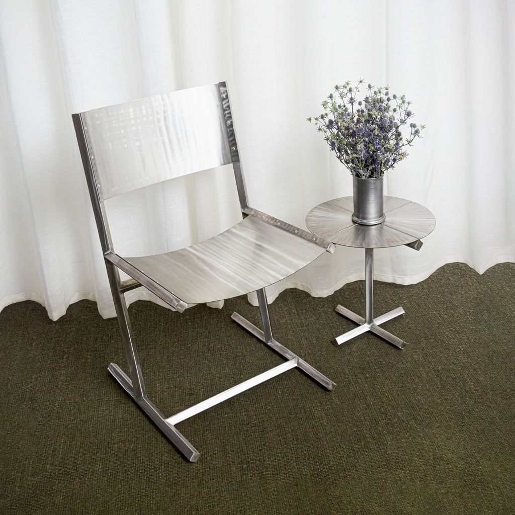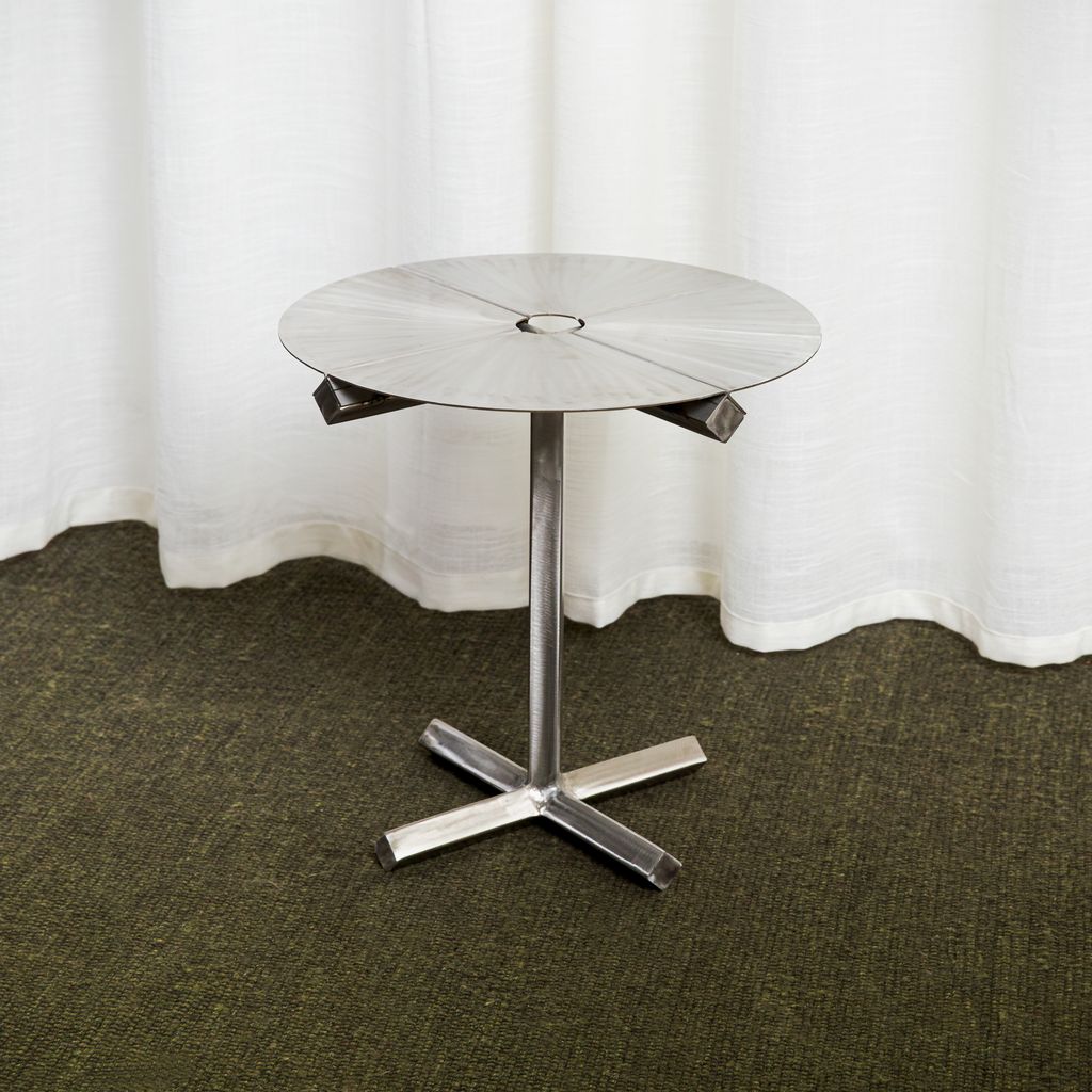 The A45 Side Table is a piece developed as a part of a constructive exploration on PTR (Square section steel tubing). The construction was born from the simple act of rotating a 1” PTR in a 45° angle and articulating a rational approach to a chair through the degrees of freedom afforded by the angled disposition of the tubing. The piece utilizes only 2 materials for the build, PTR and stainless steel plaques, which can then be powdercoat painted.