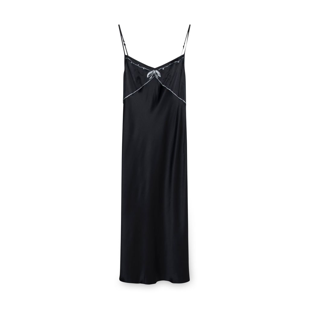 Silver Bow Midi Dress is a vintage upcycled midi that features hand-painted artwork.