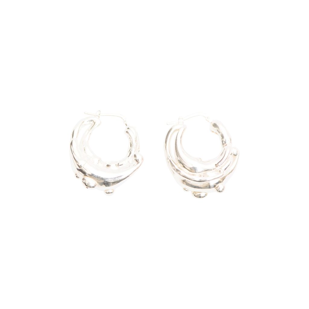Hannah Jewett jewelry unites virtual artistry with artisanal silversmith methods to transform the house’s retro-futuristic aesthetic into luxury jewelry. Inspired by AI elements, melted metal, fluid shapes, Hannah Jewett brings digital landscapes to wearable designs.