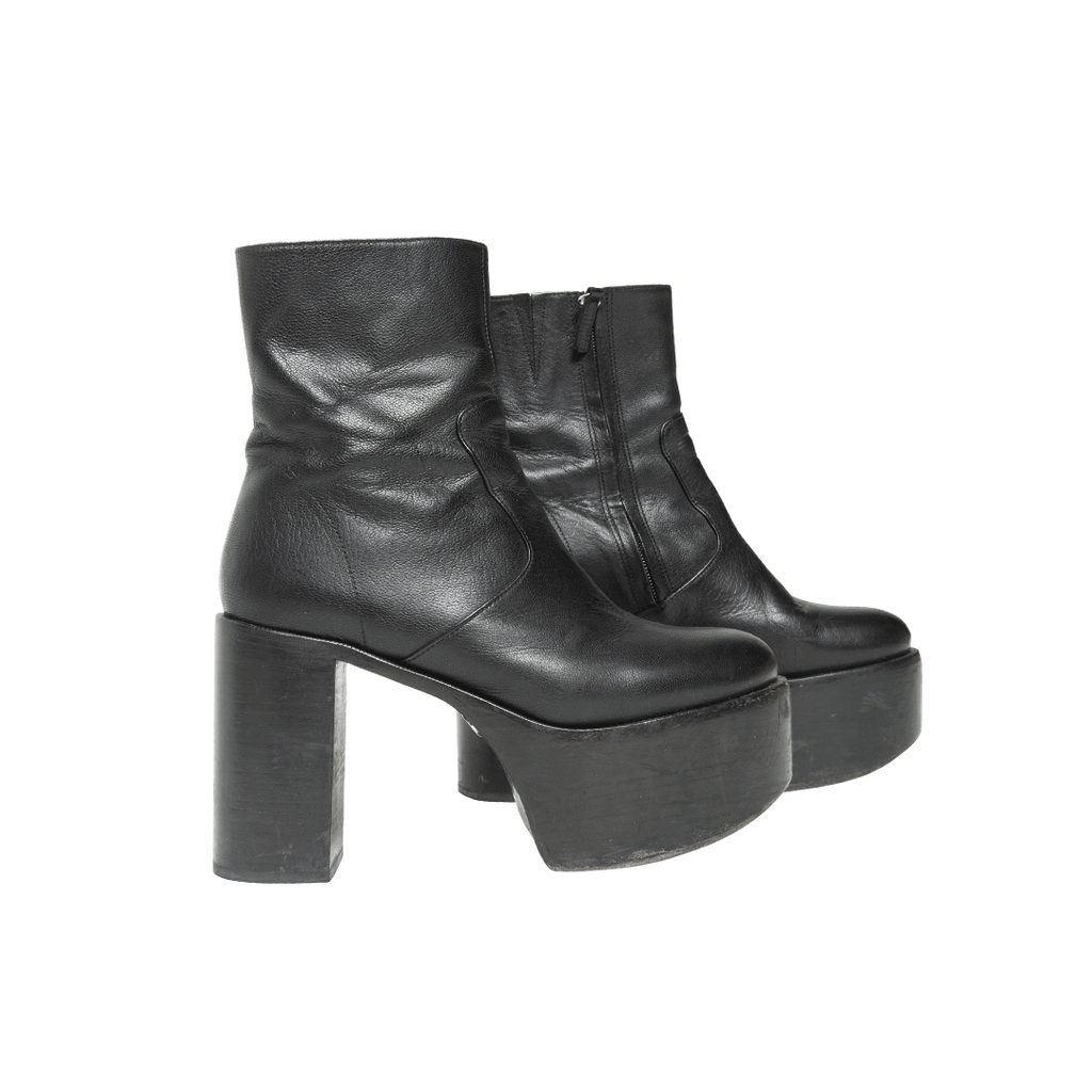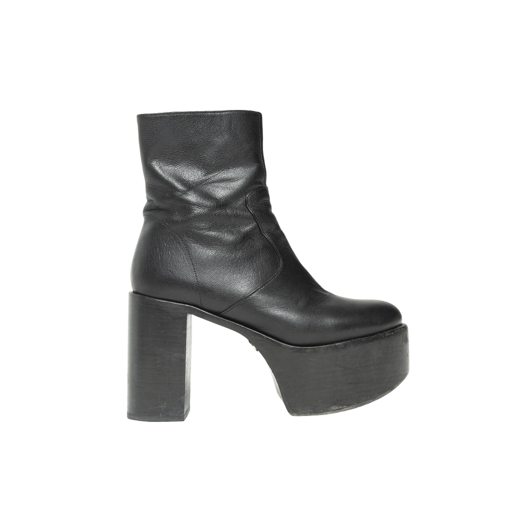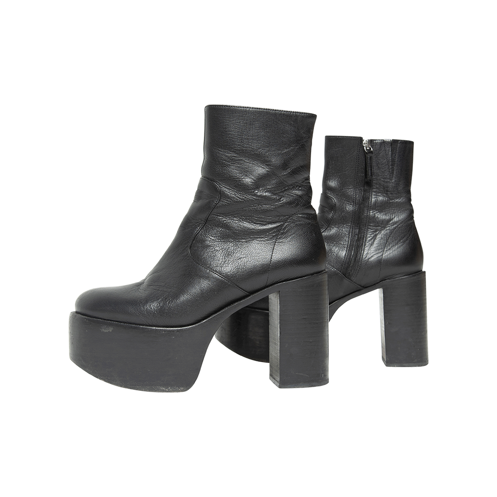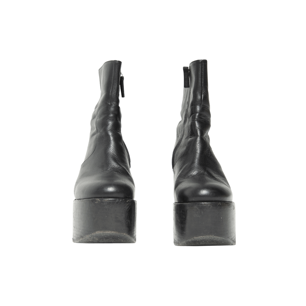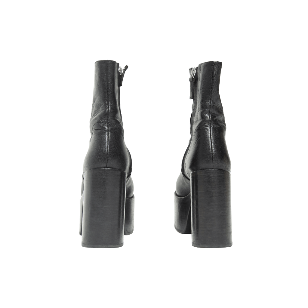 Simon Miller Black Leather Platform Boot features inner zip closure and wooden block heel and platform.