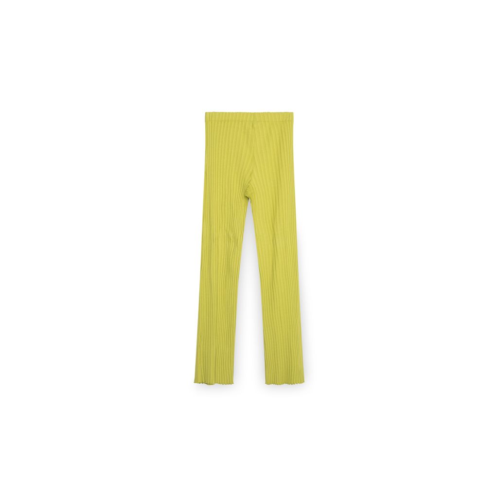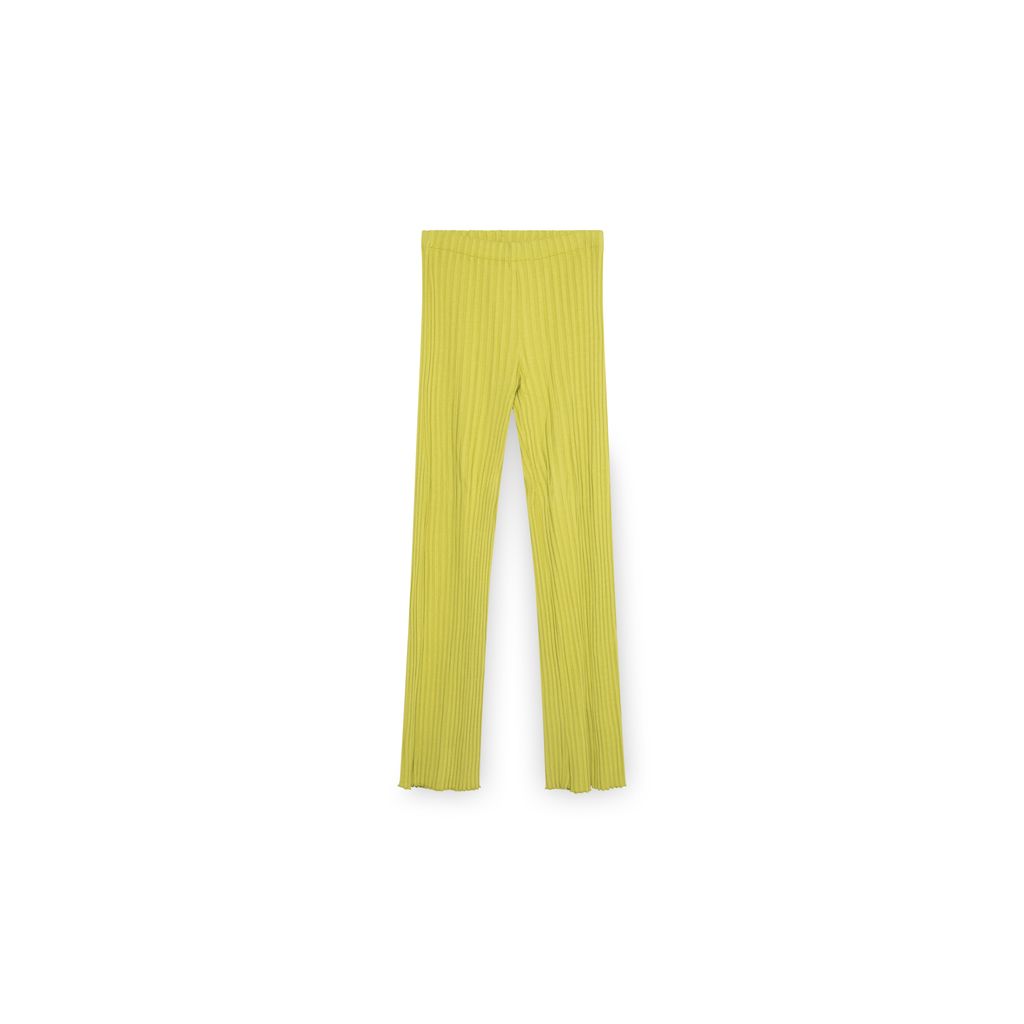 Simon Miller Chartreuse Ribbed Pants features wide rib distinct aesthetic, covered elasticated waistband, and pull on design.