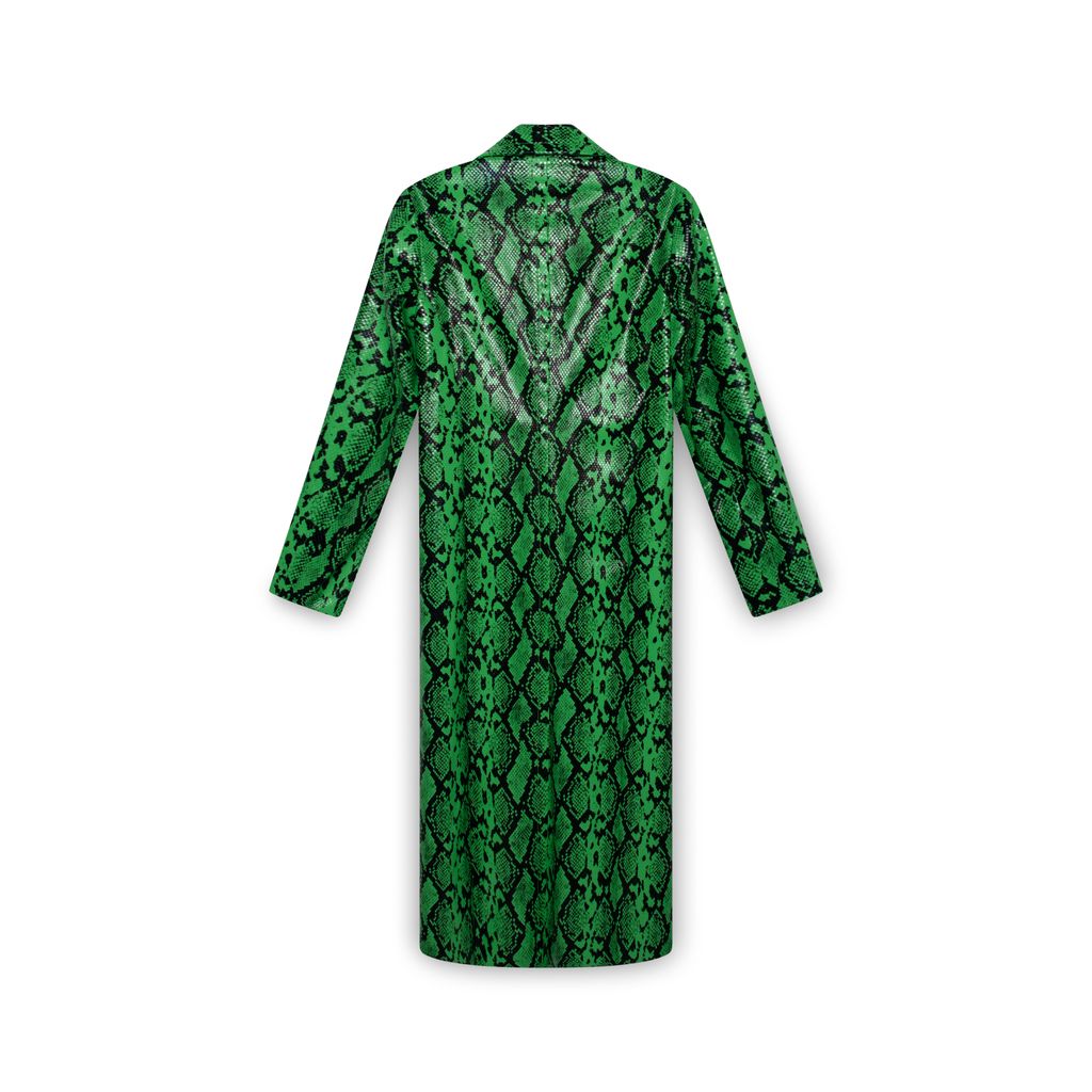 Simon Miller Green Joto Faux Snakeskin Coat features notch collar, concealed snap front, 2 pockets, and single vent in back.