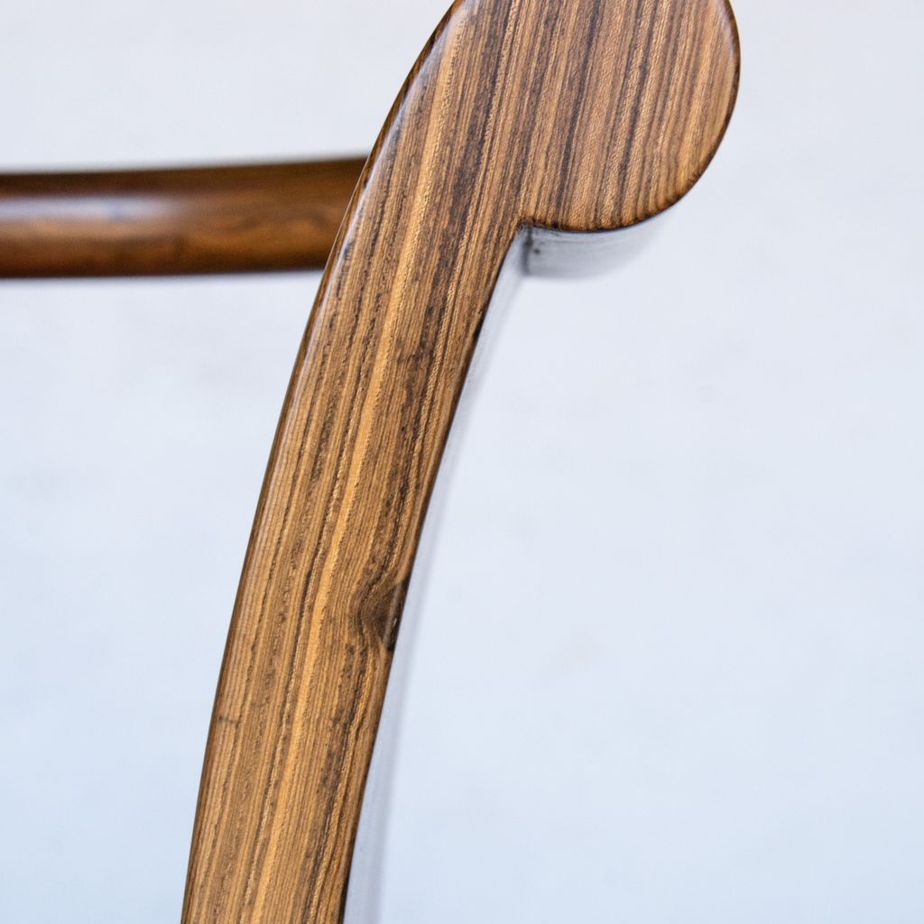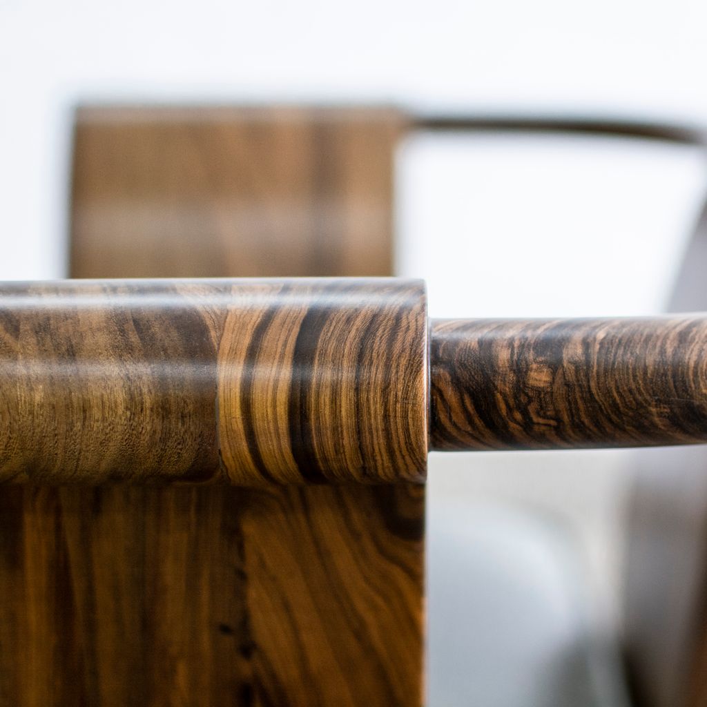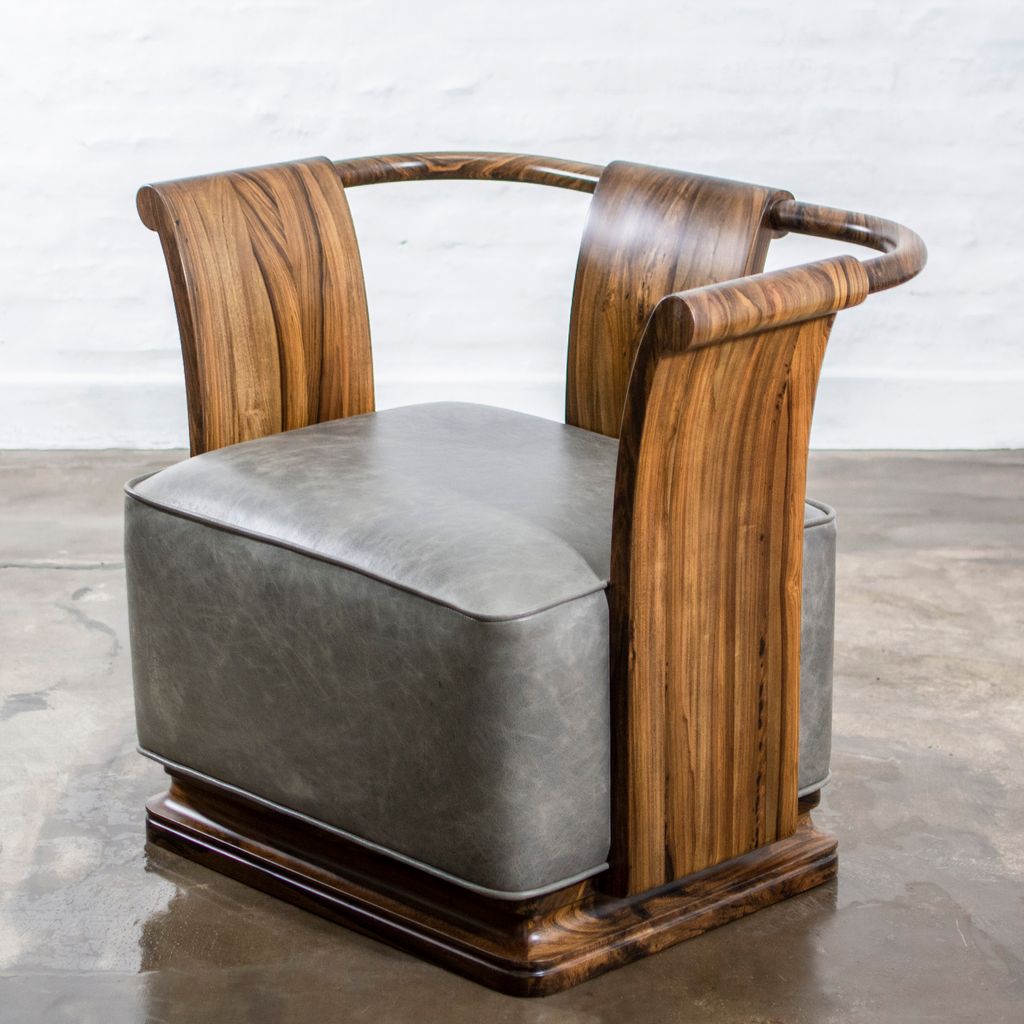 The Simone Chair’s gently sloping sides and back allude to forms from early 20th century Art Deco style. Shown in Argentine Rosewood but available in any solid wood and the upholstery material of your choice.