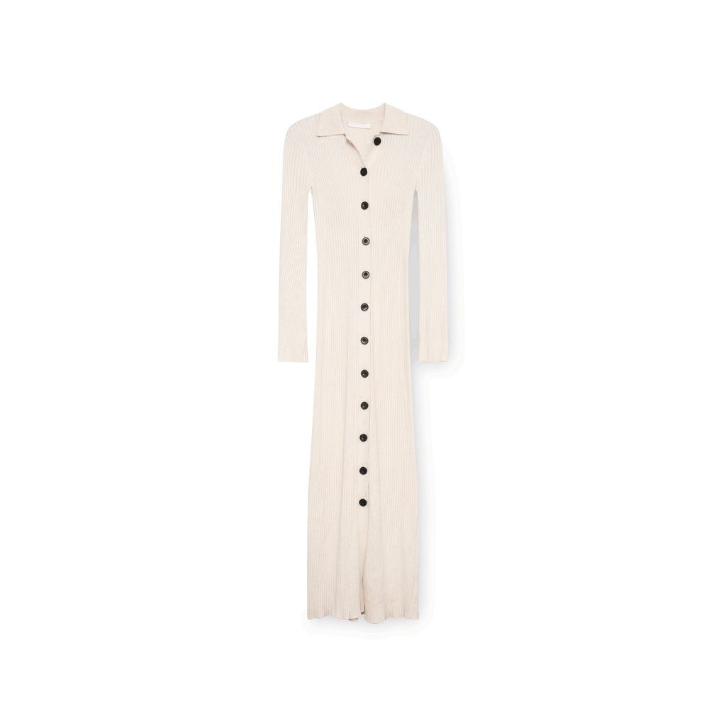 SIR. Maxi Dress features pleated texture, neck collar and button closure.