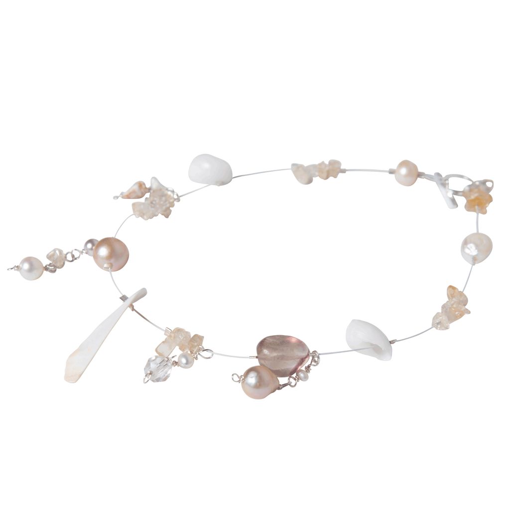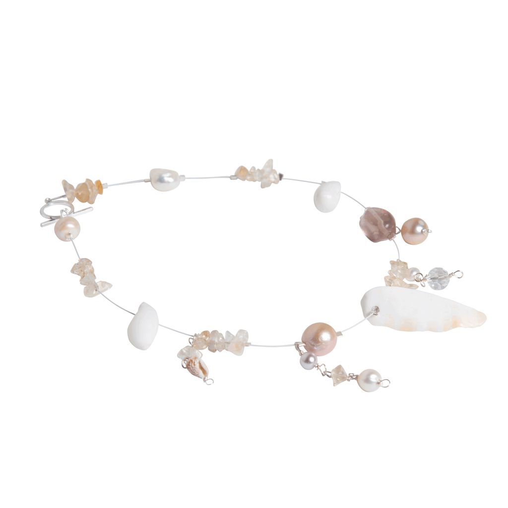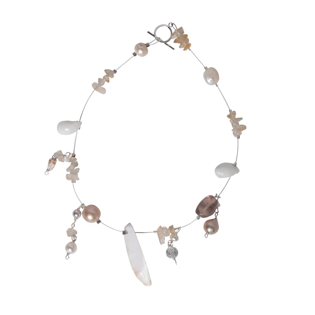 Citrine, freshwater pearls, flurite, upcycled shell, 925 Silver Hardware