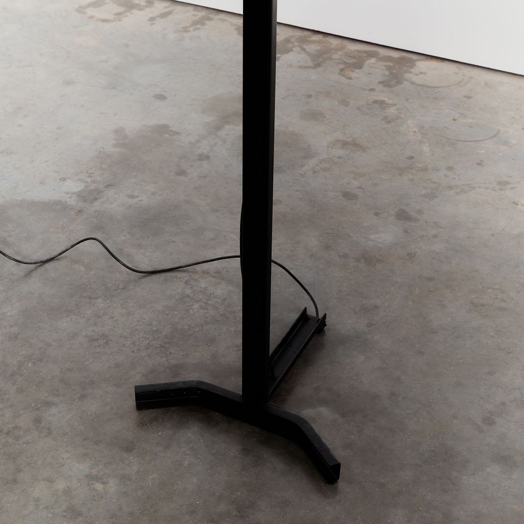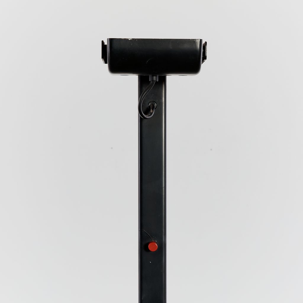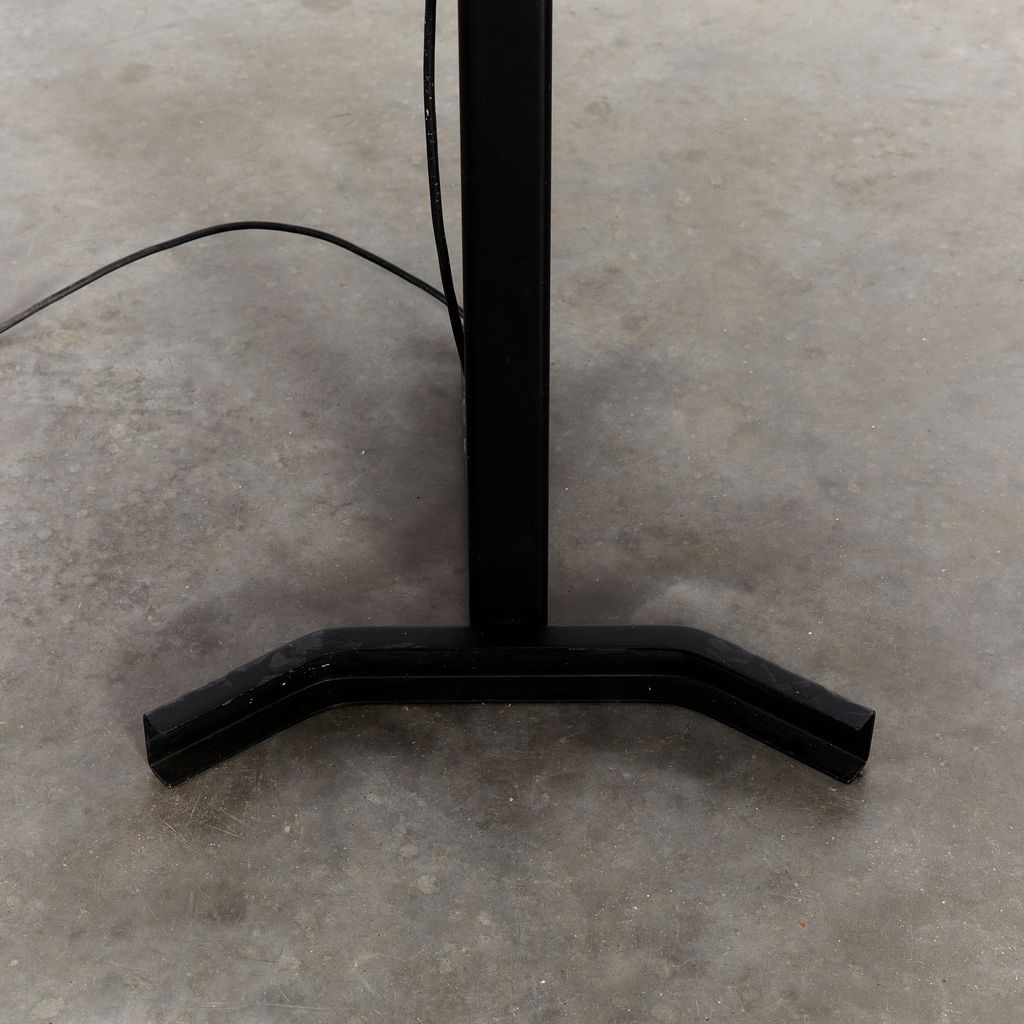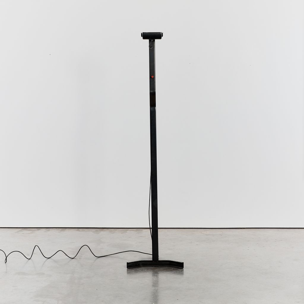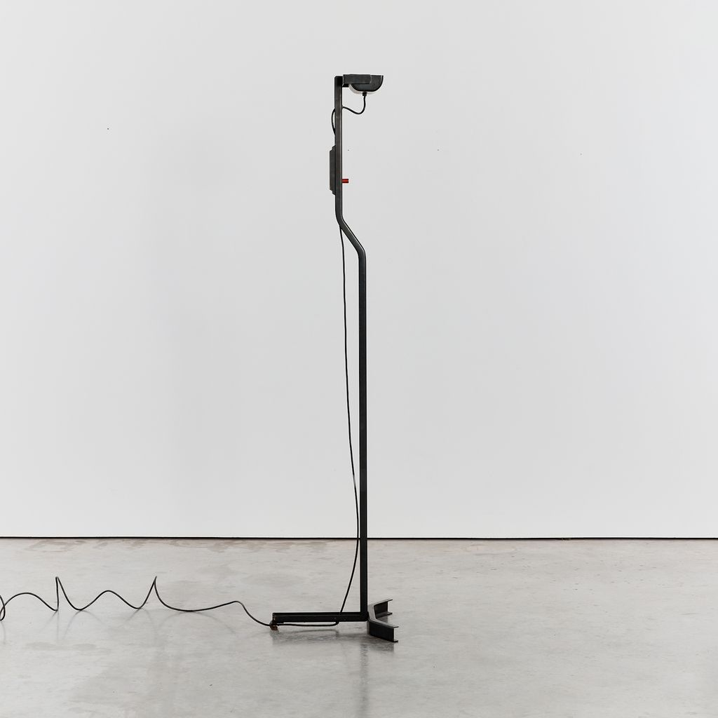 Sirio T floor lamp by Kazuhide Takahama with a matte black powder coating. No longer in production, this distinctive floor lamp features the hallmarks of Takahama's minimal/technical designs.
