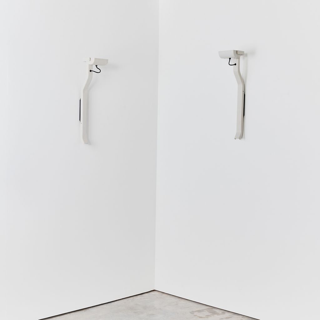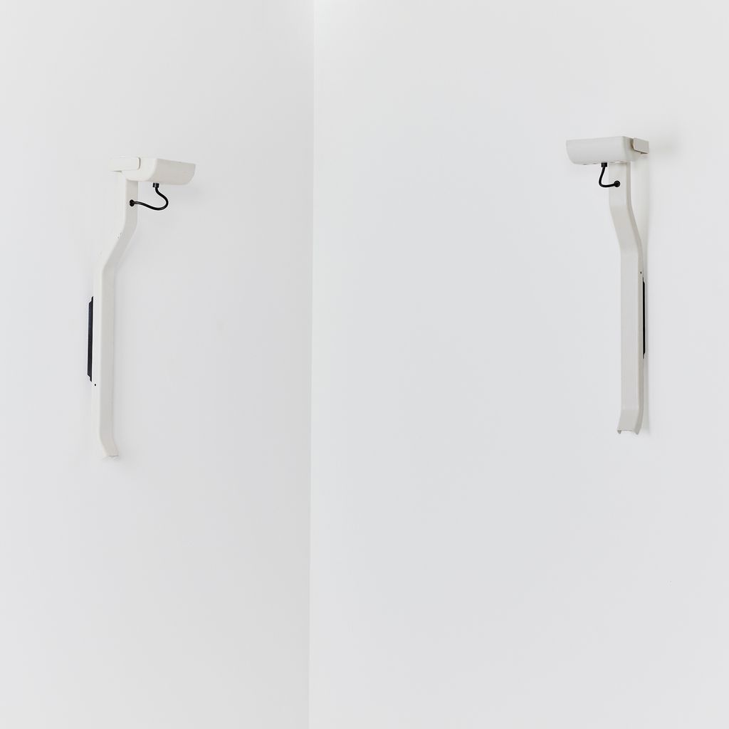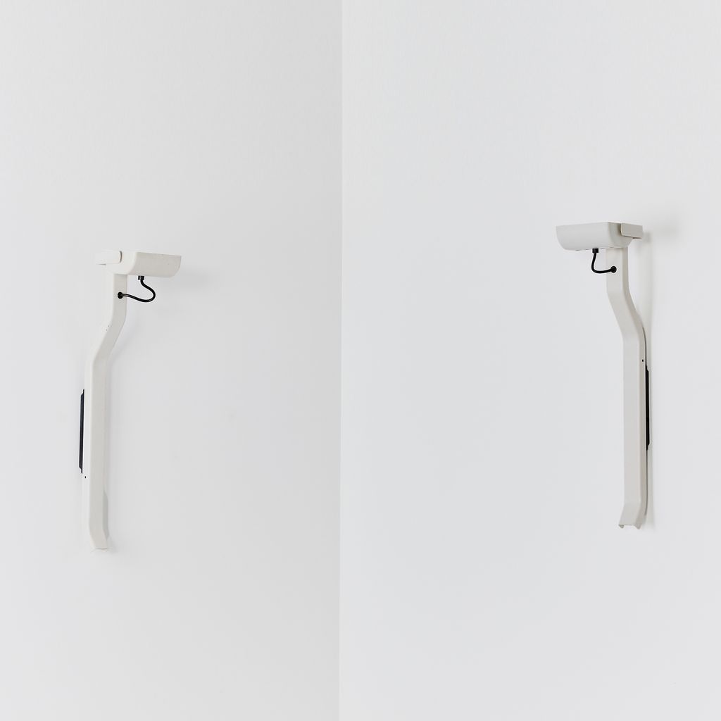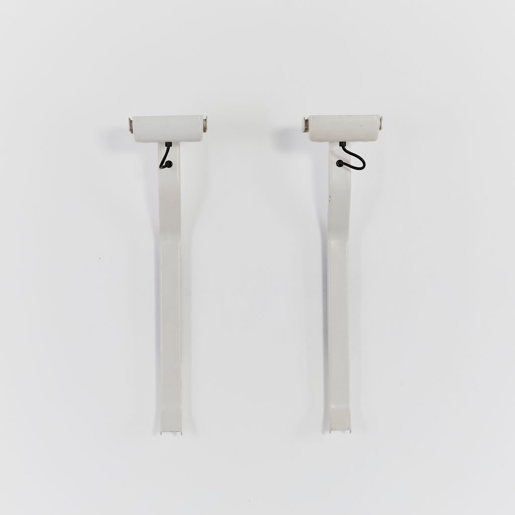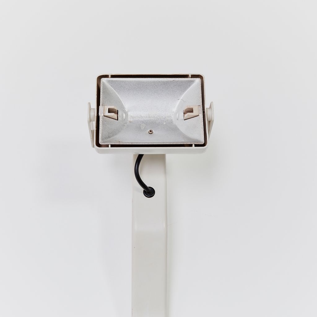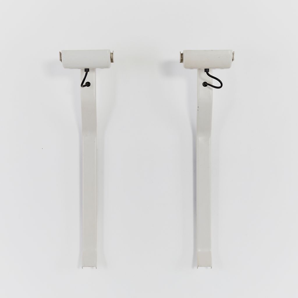 Sirio wall sconces by Kazuhide Takahama with an off-white powder coating. No longer in production, these distinctive wall lamps feature the hallmarks of Takahama's minimal/technical designs. Requires electrician to wire in to the wall. Three available, sold separately.