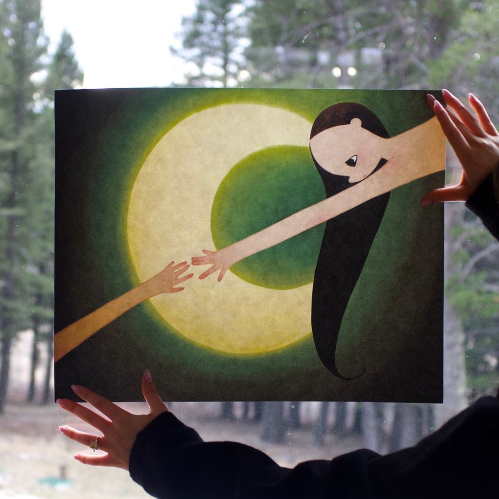 A limited edition giclée print of Sasha December's "sisters" on handmade thick Japanese Awa Washi paper. Each edition is unique due to the nature of washi paper. Signed and numbered by Sasha December, and printed in Japan. Edition of 22.