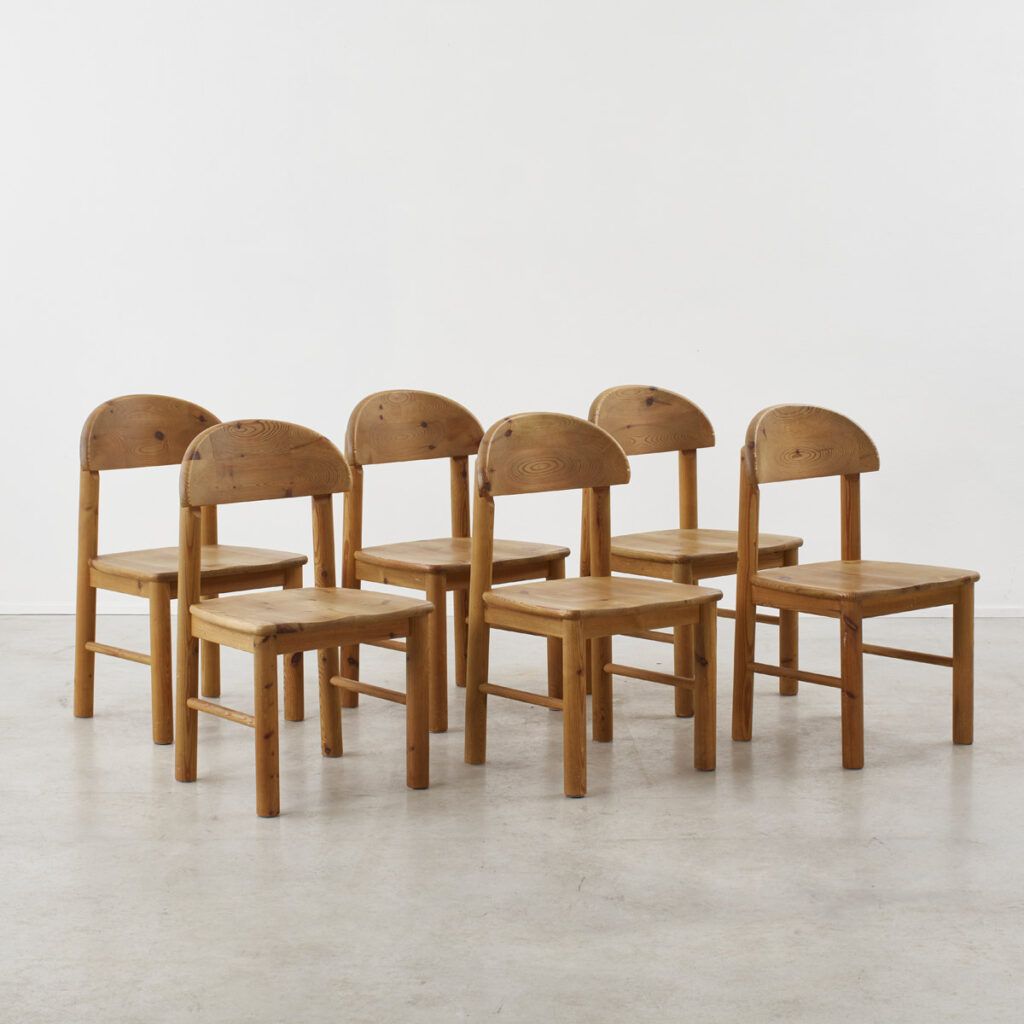 Made of solid pine, the chairs are in good vintage condition, with some recent restoration to restore minor scratches to surface. Sold as a set of six.
