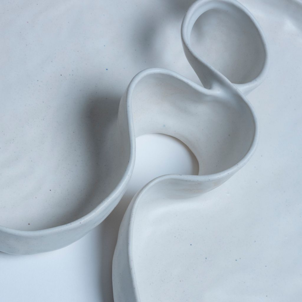 Kelsey Malone hand-builds stoneware forms inspired by gesture, bone structures, and airflow patterns. The clay is worked to create a physical expression of movement. Kelsey was introduced to the medium by her grandmother, and began selling work in 2016 under Busted Ceramics. Malone holds a BA from Northwestern University (2020) and an MA from the Royal College of Art (2024). Kelsey lives and works in New York.
