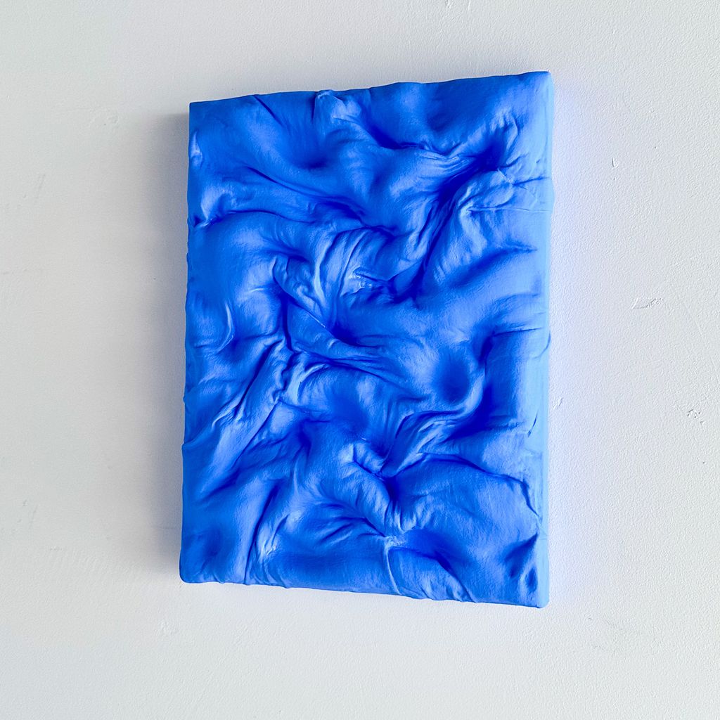 Flashé, cotton (worn t-shirt), molding paste on birch panel.