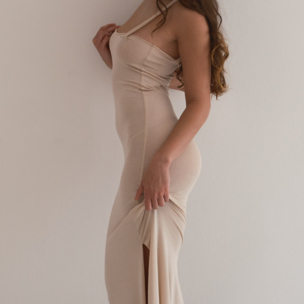 Accentuates every single body type perfectly. Inspired by the familiar feeling found in Kari's Italian culture - The woman body being beautiful as it is. Dry clean. Iron low temp. Do not bleach. Do not tumble dry. 70% Recycled Cotton blend with 25% Polyester, 5% Spandex - minimizing carbon emissions and embracing a culture of sustainability. Made in Los Angeles.