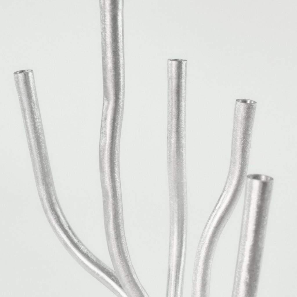 In Six Dot's signature raw aluminium, the piece blends seamlessly into any colour pallet or interior. At each stage of the design there was a commitment to showing the hands of the maker in the piece, each grind mark, scratch and scuff revel a story about the tools and hands that created the piece.