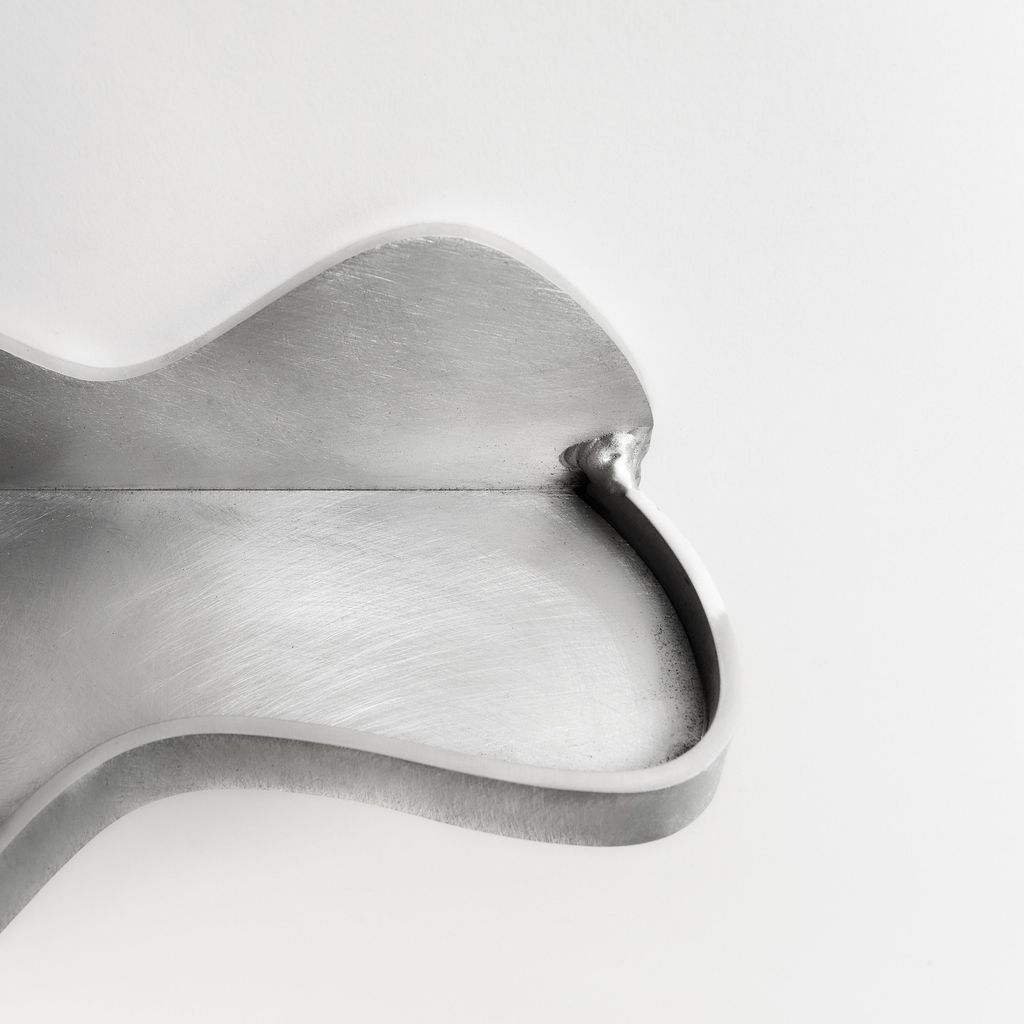 In Six Dot's signature raw aluminium, the piece blends seamlessly into any colour pallet or interior. At each stage of the design there was a commitment to showing the hands of the maker in the piece, each grind mark, scratch and scuff revel a story about the tools and hands that created the piece.