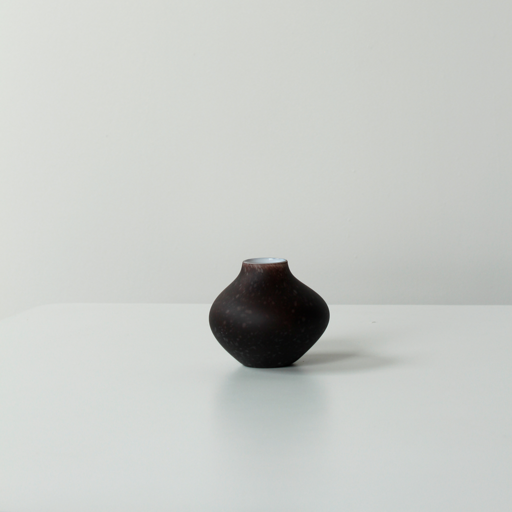 Small handblown glass vase in speckled Chocolate. Opaque frosted finish.