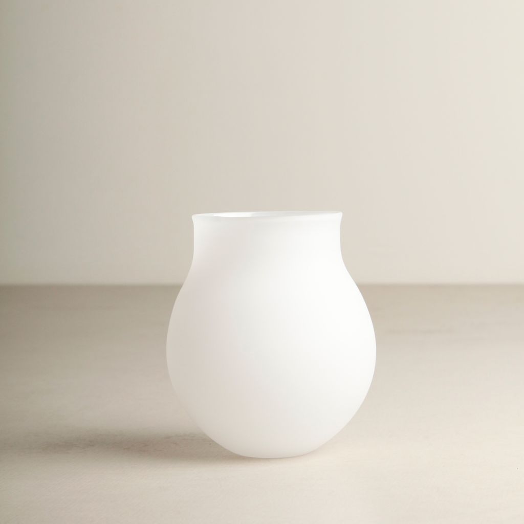 Small handblown glass vase in Ghost. Semi-transparent frosted finish.