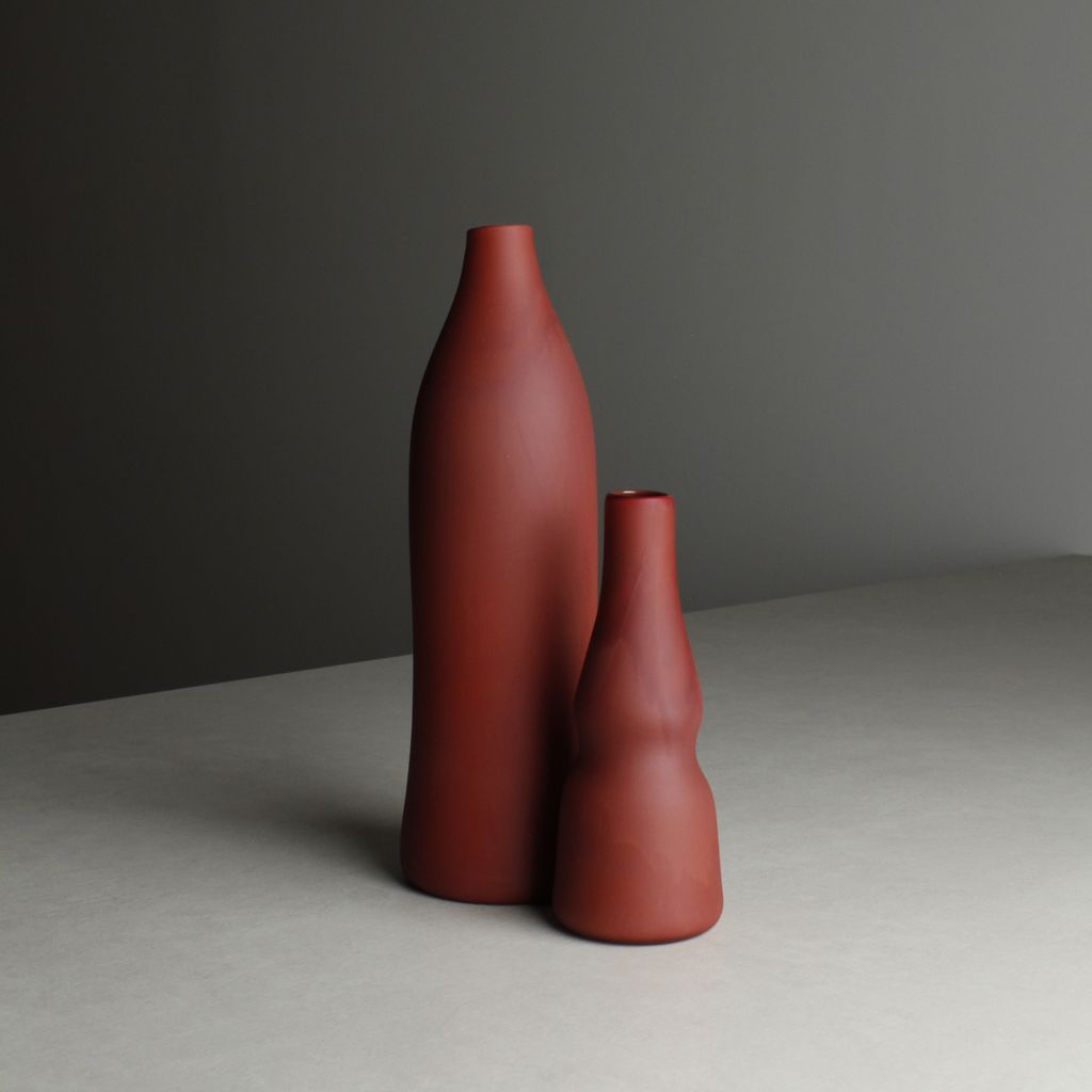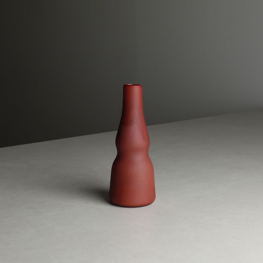 Small handblown glass vase in Terra Cotta. Opaque satin finish.