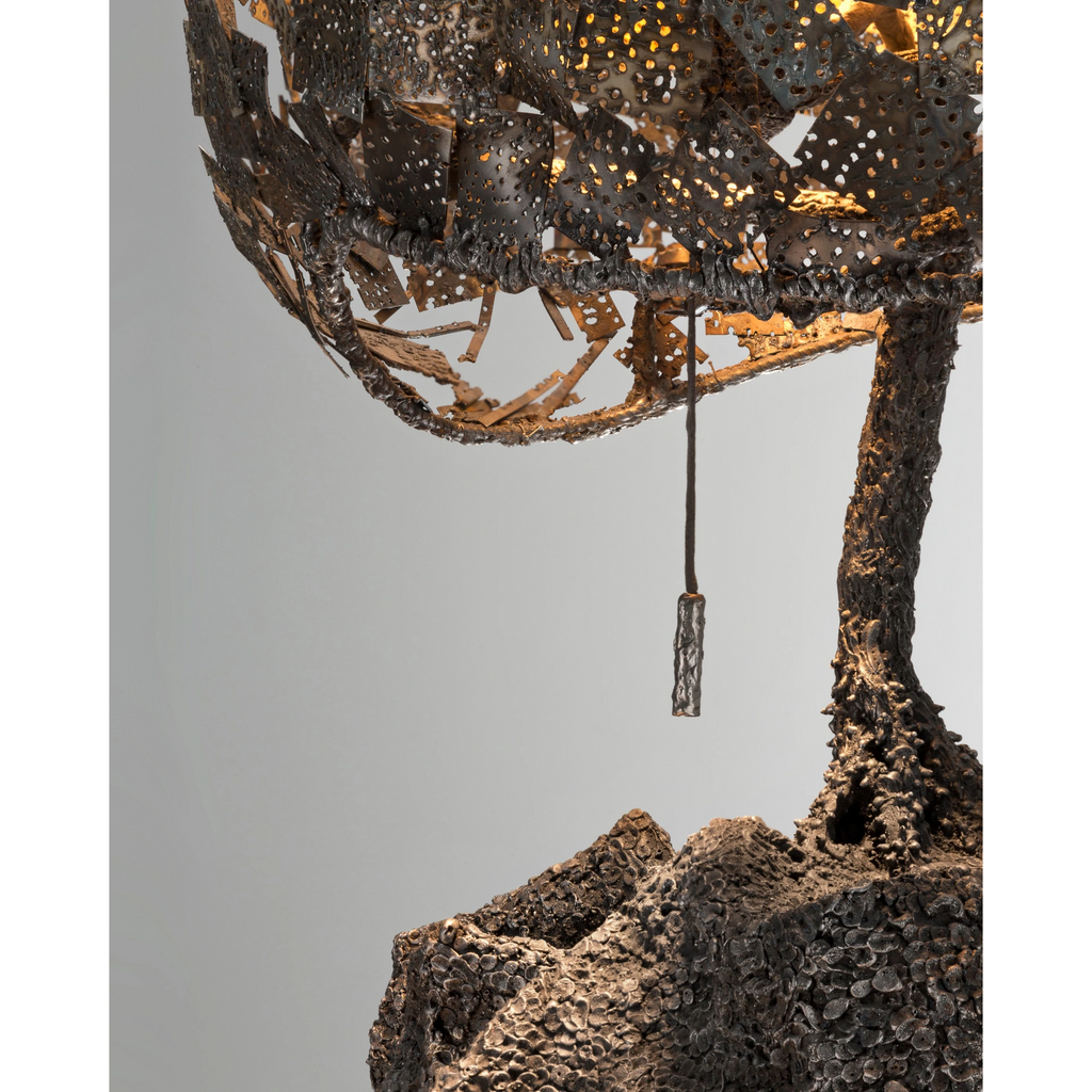 Metal welded lamp shade and branch, bronze base, silicone cable, light fittings. Unique.