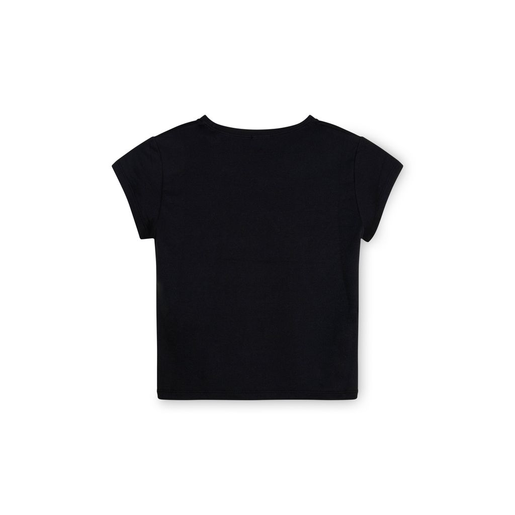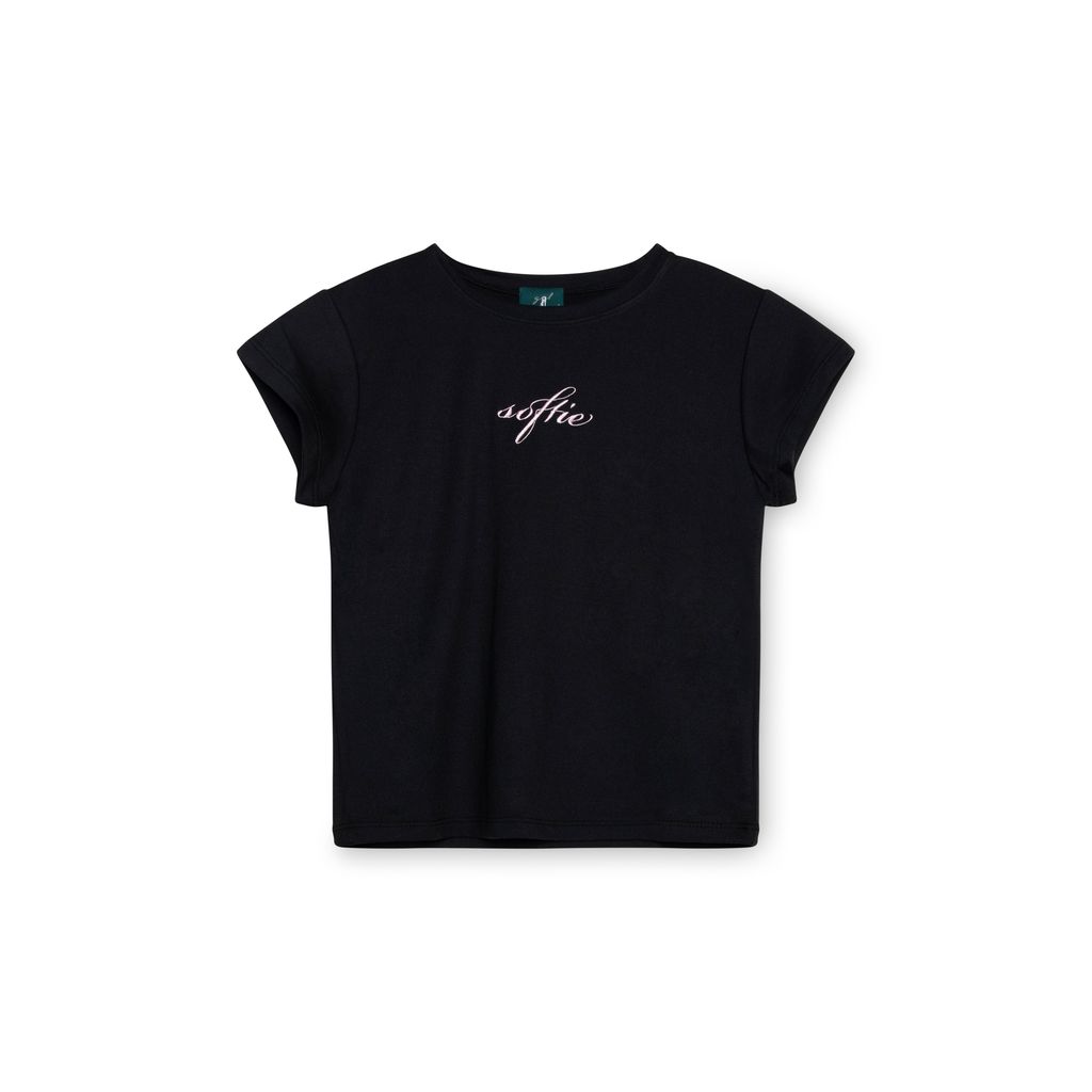 Softie Tee in Black features slightly cropped fit, pudding fabric, and embroidery on chest.