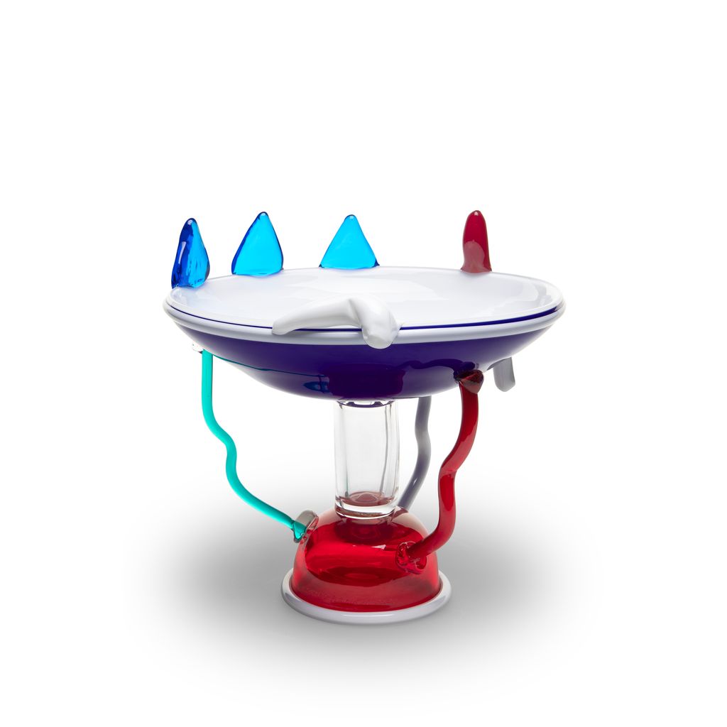 Colorful, bright, flamboyant at times, the glass objects by Memphis take on the guise of “sculptures”: true works of art of exceptional expressive force. Ettore Sottsass designed Sol in 1982.